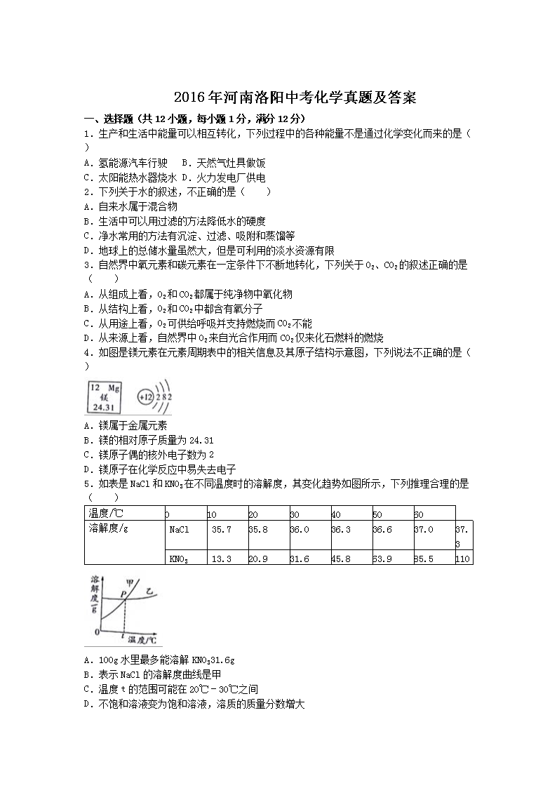 【文档预览】 无忧考网整理发布2016年河南洛阳中考化学真题及答案(Word版),前五页预览如下: