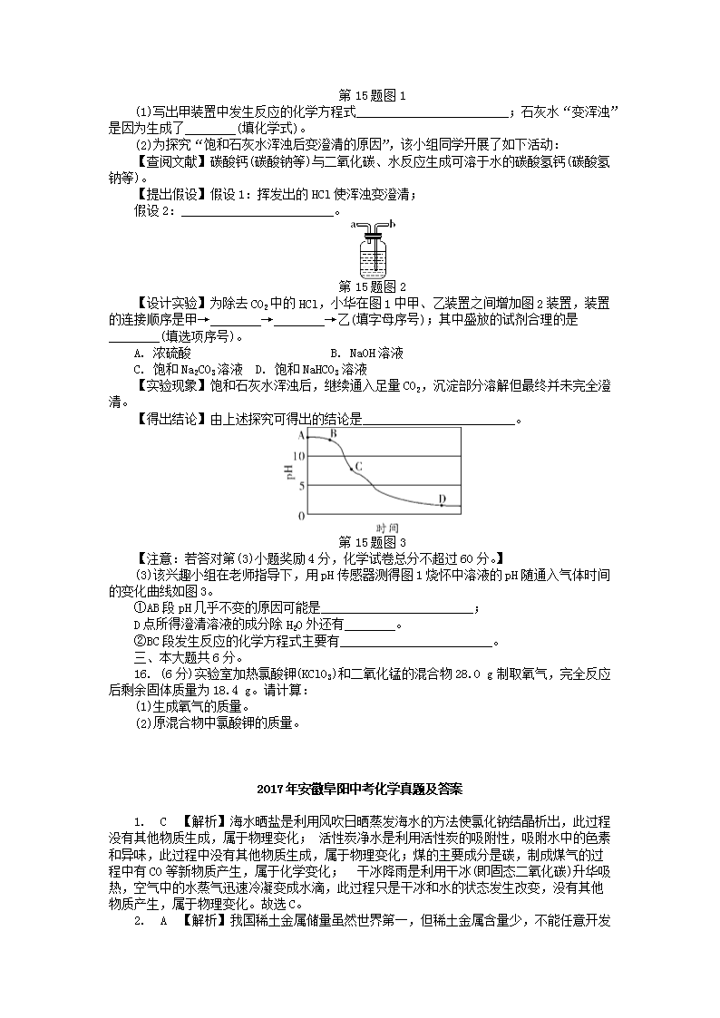 【文档名称】 2017年安徽阜阳中考化学真题及答案(Word版).doc