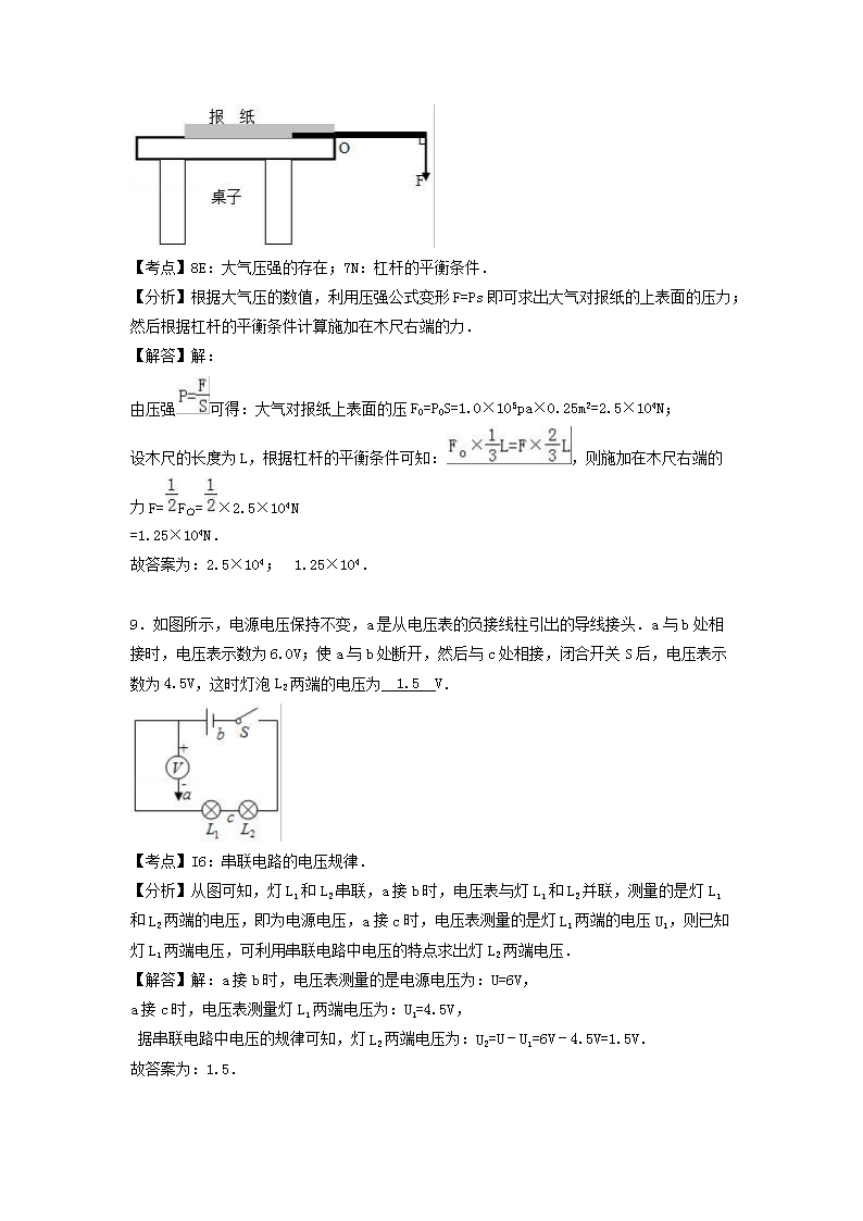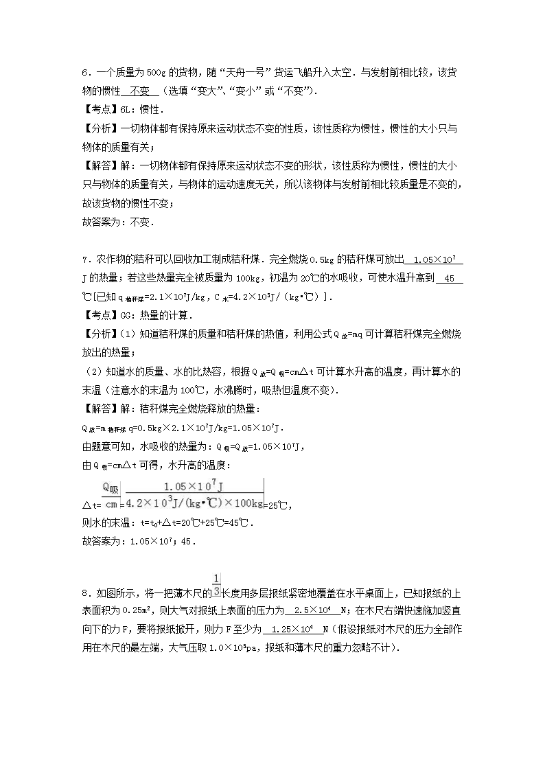 【文档名称】 2017年安徽阜阳中考物理真题及答案(Word版).doc