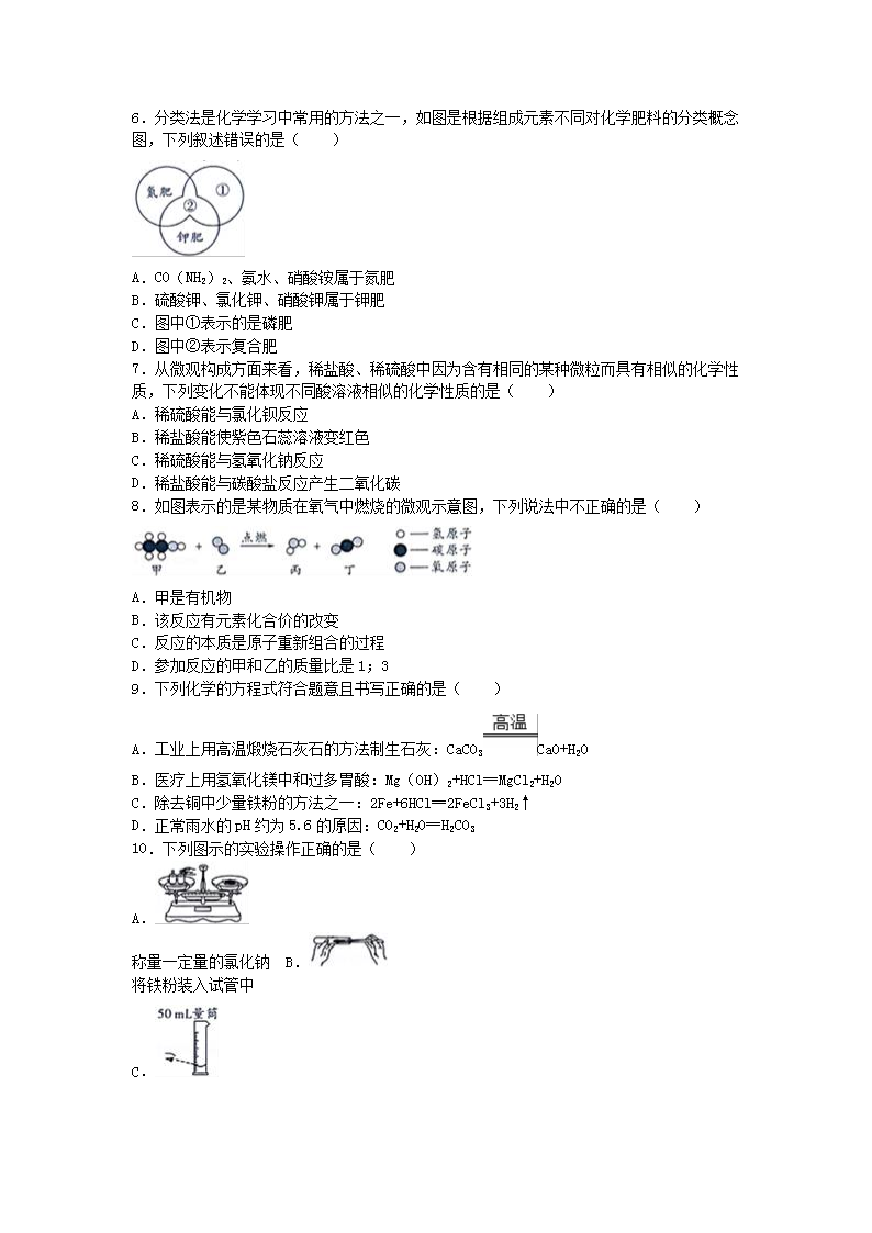 【文档名称】 2016年河南周口中考化学真题及答案(Word版).doc