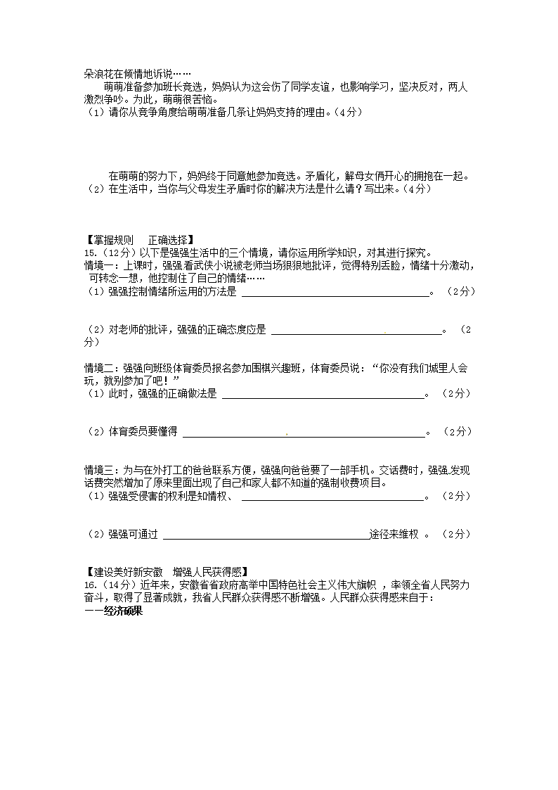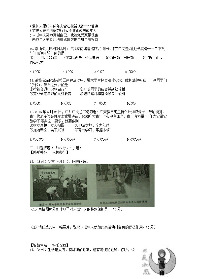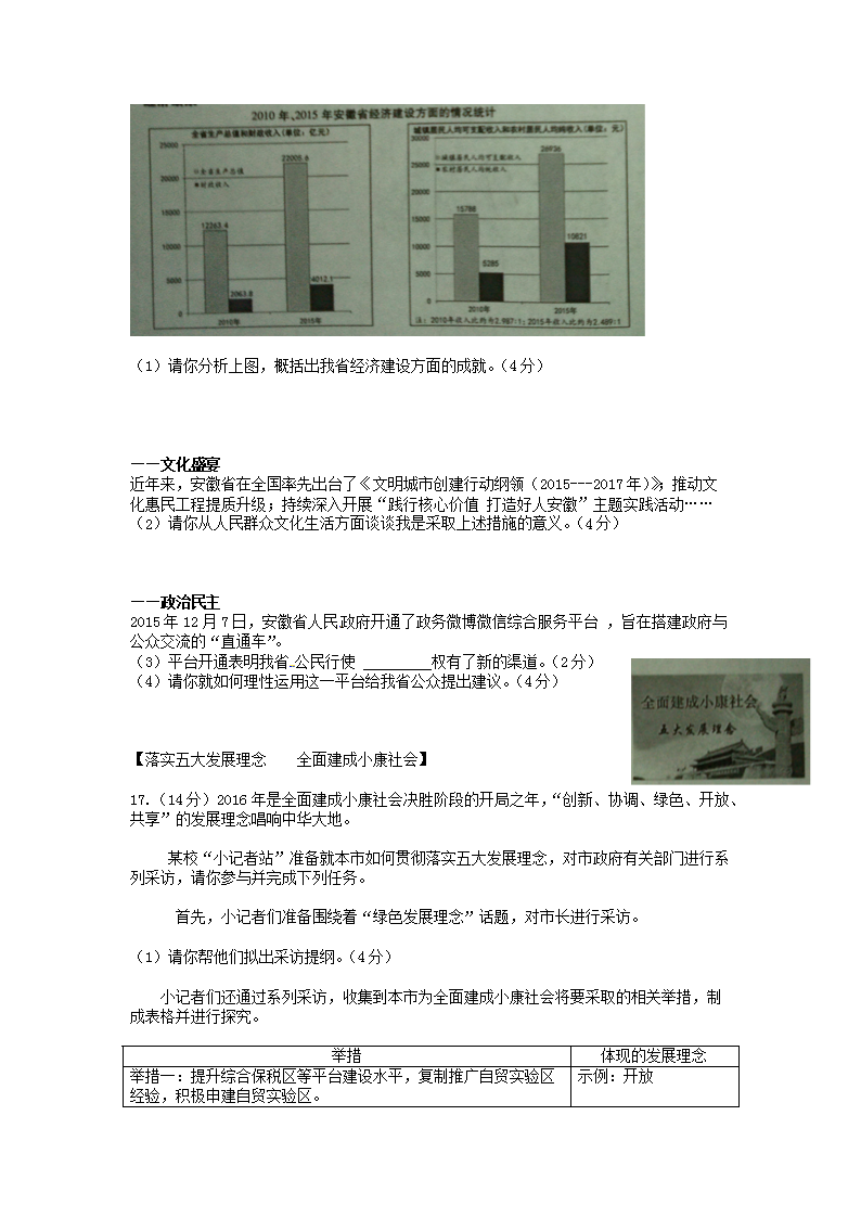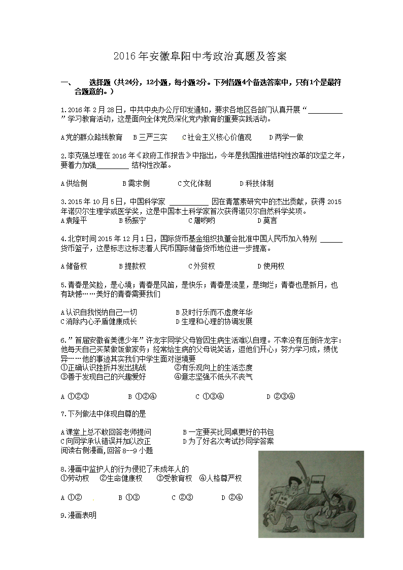【文档名称】 2016年安徽阜阳中考政治真题及答案(Word版).doc