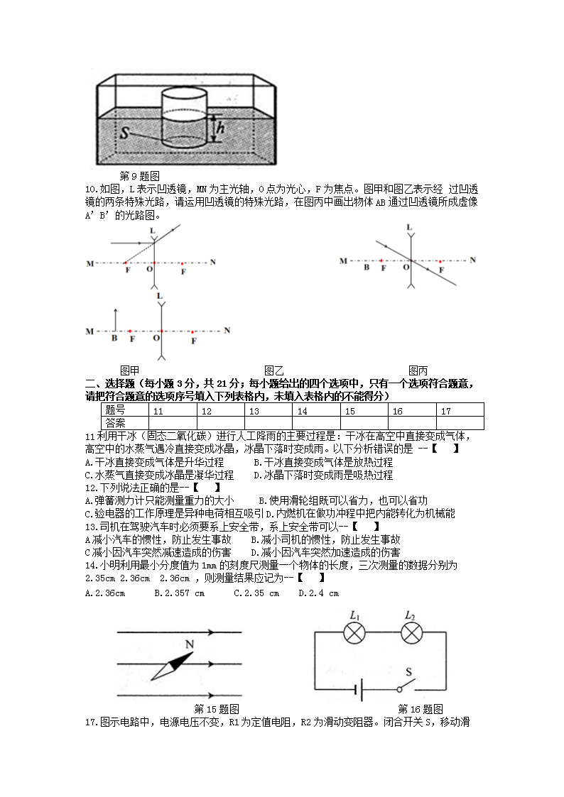 【文档名称】 2015年安徽阜阳中考物理真题及答案(Word版).doc