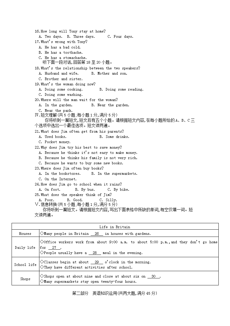 【文档预览】 无忧考网整理发布2015年安徽阜阳中考英语真题及答案(Word版),前五页预览如下: