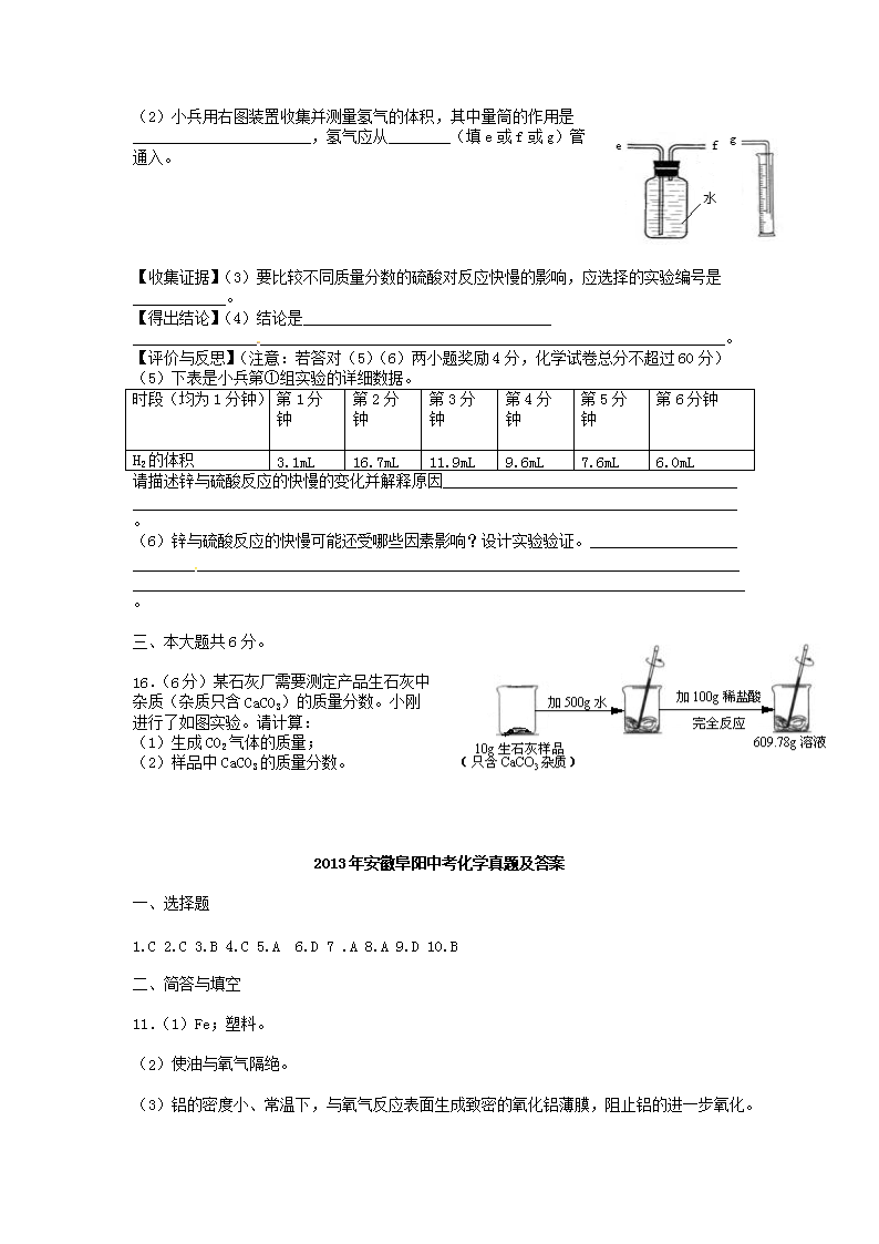【文档名称】 2013年安徽阜阳中考化学真题及答案(Word版).doc