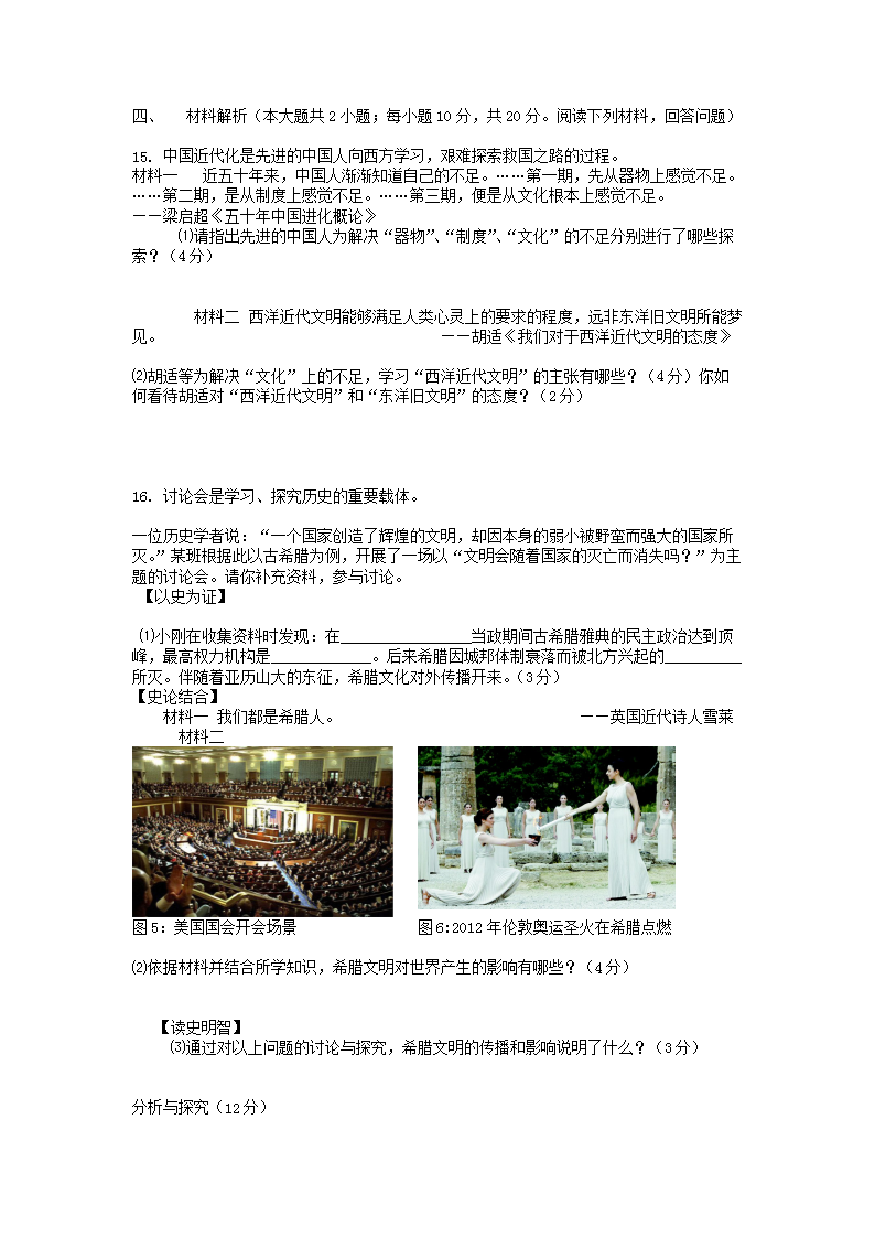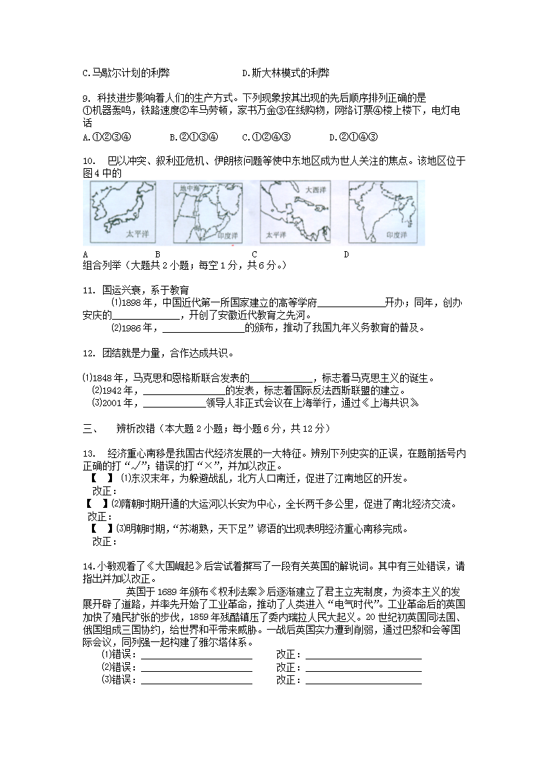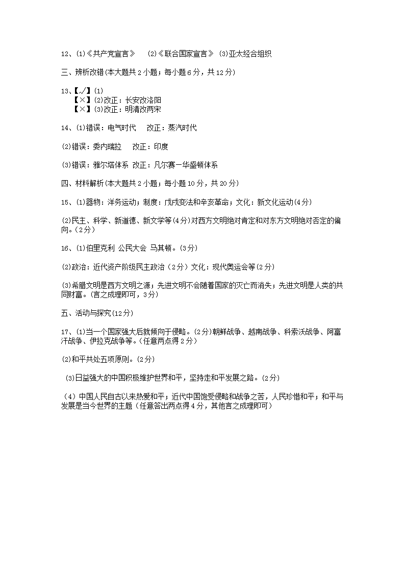 【文档名称】 2012年安徽阜阳中考历史真题及答案(Word版).doc