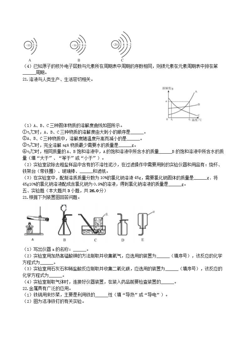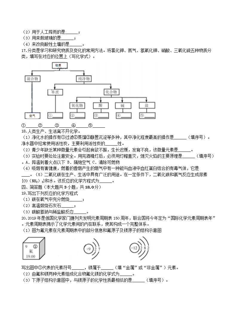 【文档名称】 2019年天津河北区中考化学真题及答案(Word版).doc