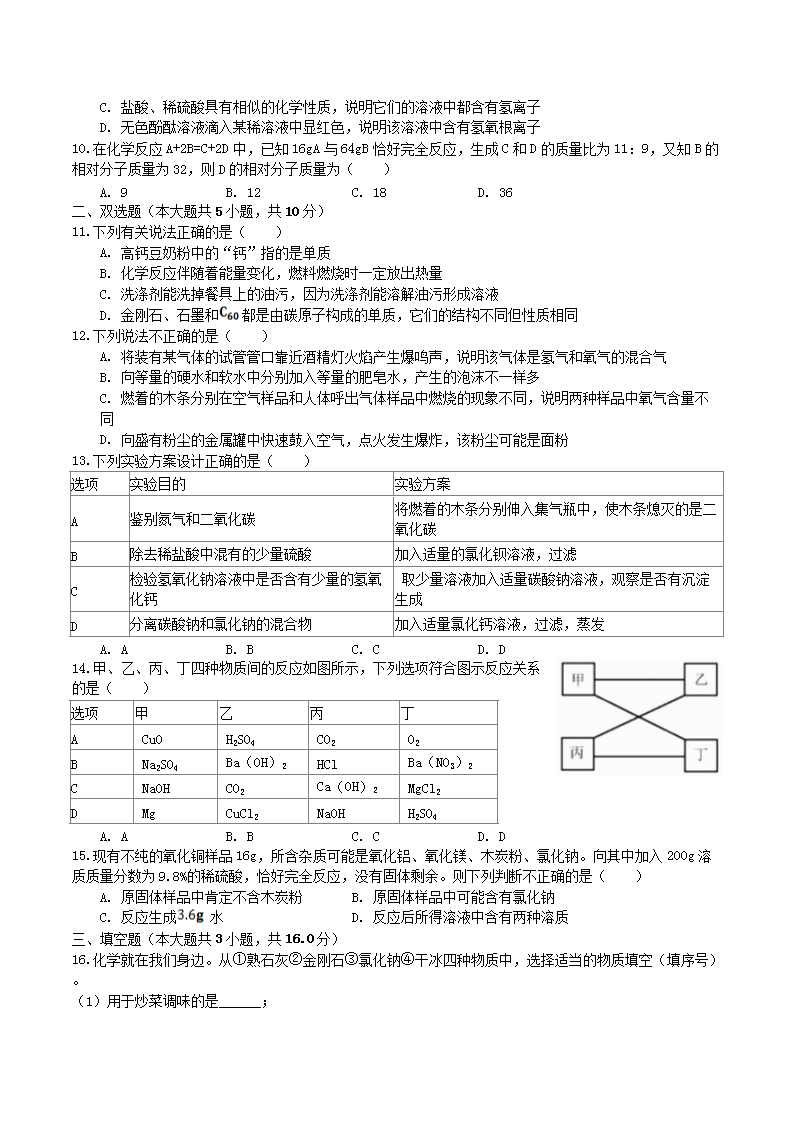 【文档名称】 2019年天津河东中考化学真题及答案(Word版).doc