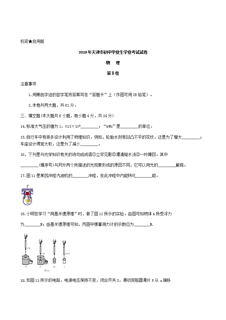 【文档名称】 2019年天津河东中考物理真题及答案(Word版).doc