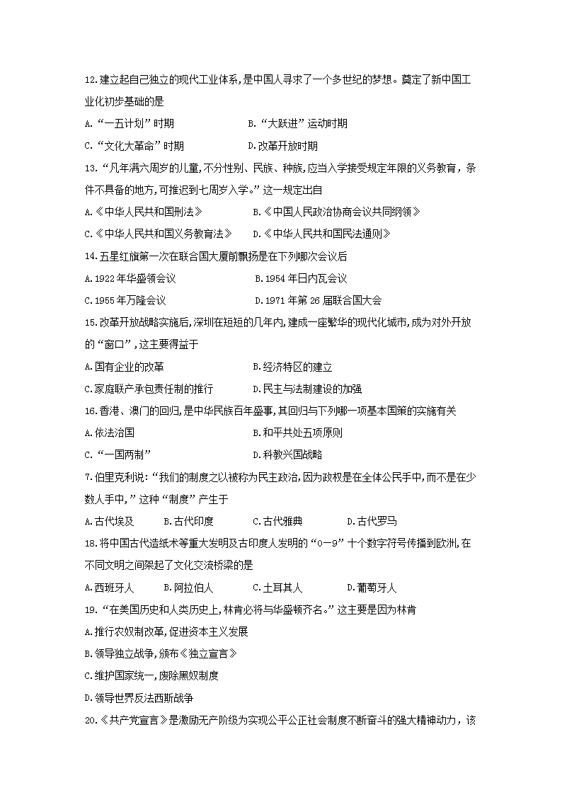 【文档名称】 2018年云南文山中考历史真题及答案(Word版).doc
