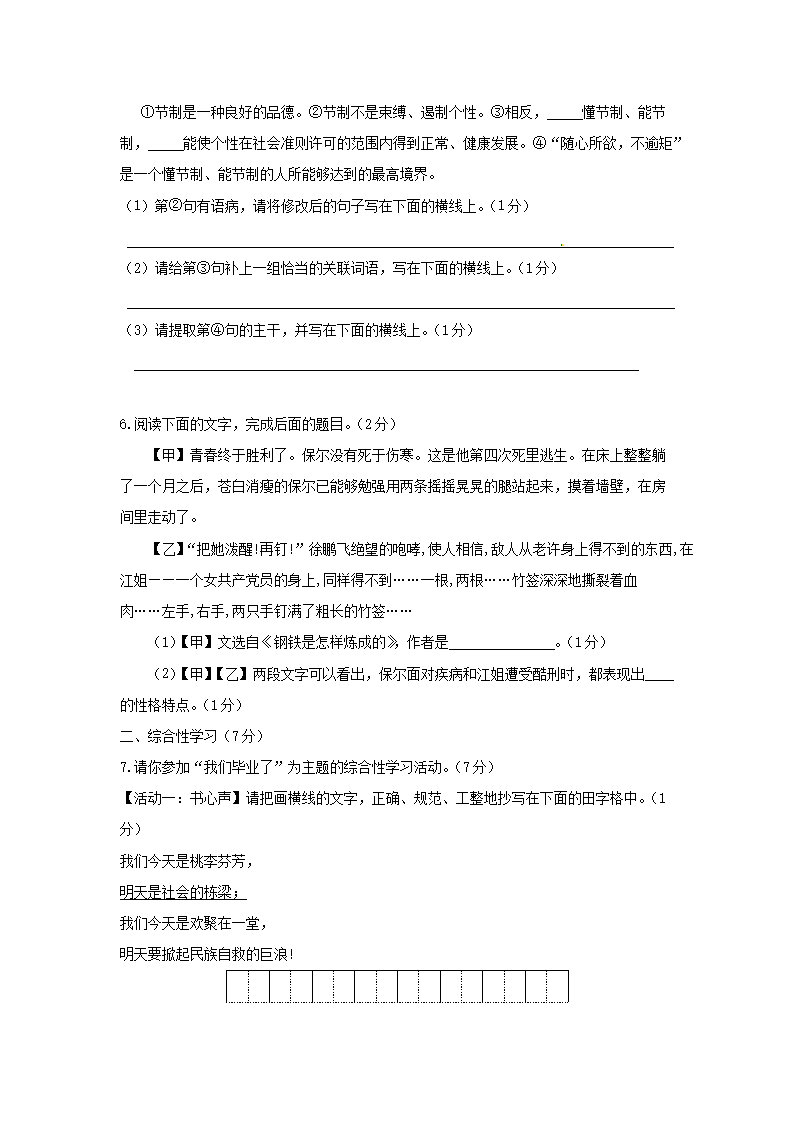 【文档名称】 2016年陕西省汉中中考语文真题及答案(Word版).doc