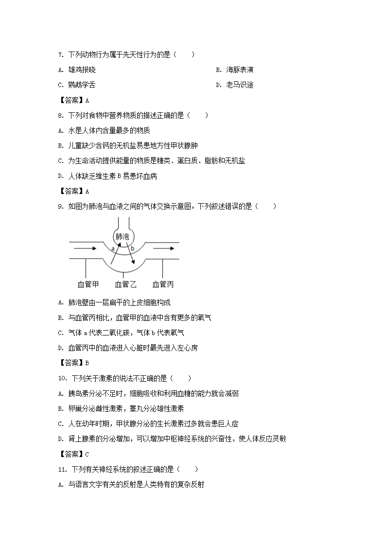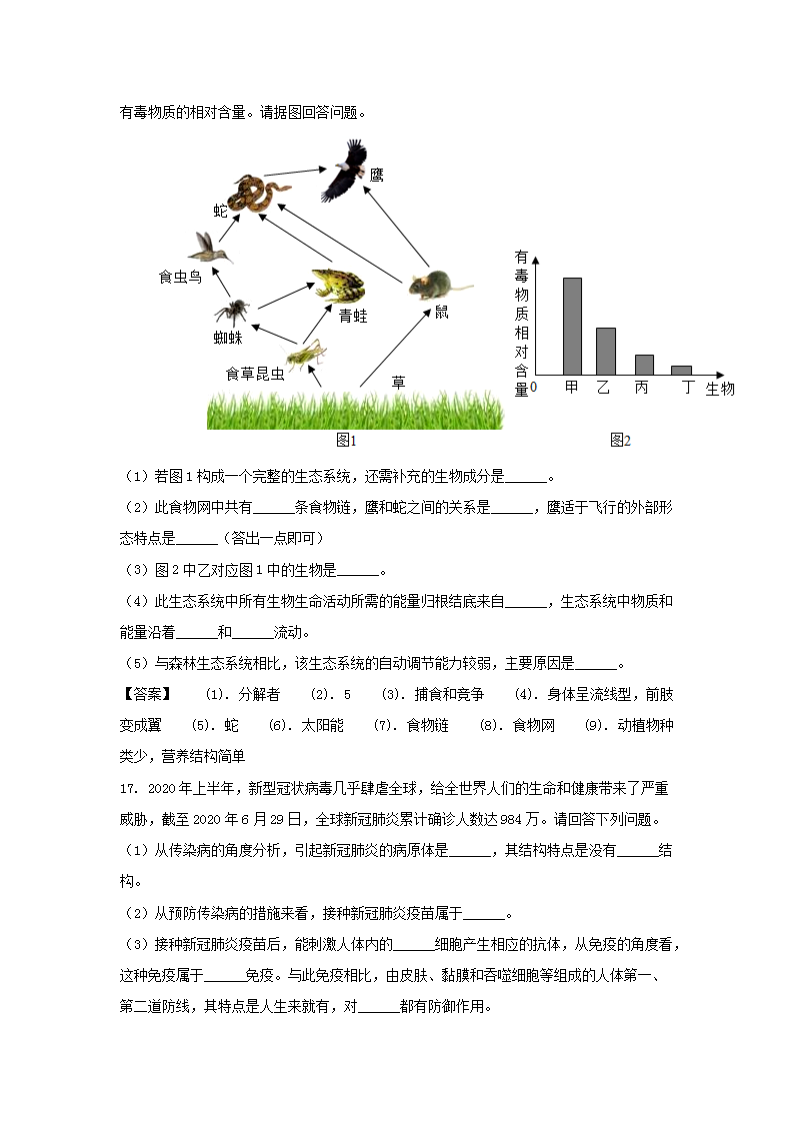 【文档预览】 无忧考网整理发布2020年辽宁锦州中考生物真题及答案(Word版),前五页预览如下: