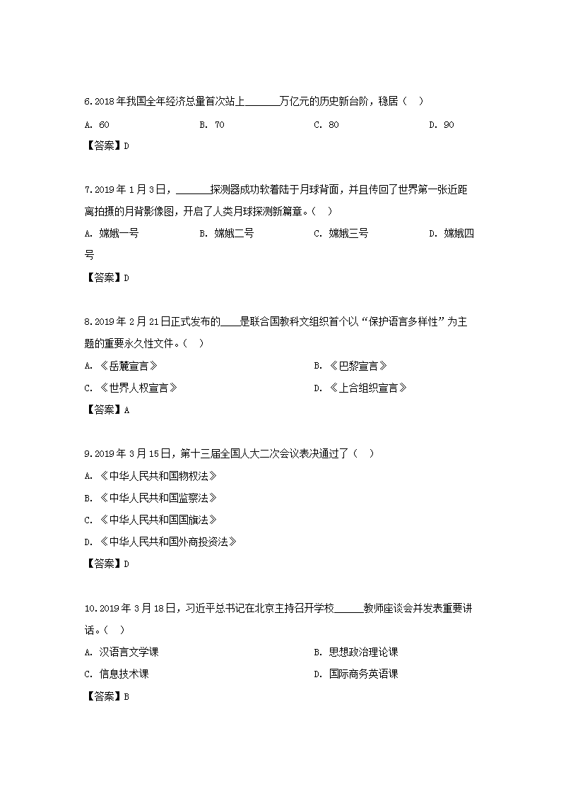 【文档名称】 2019年辽宁盘锦中考政治真题及答案(Word版).doc