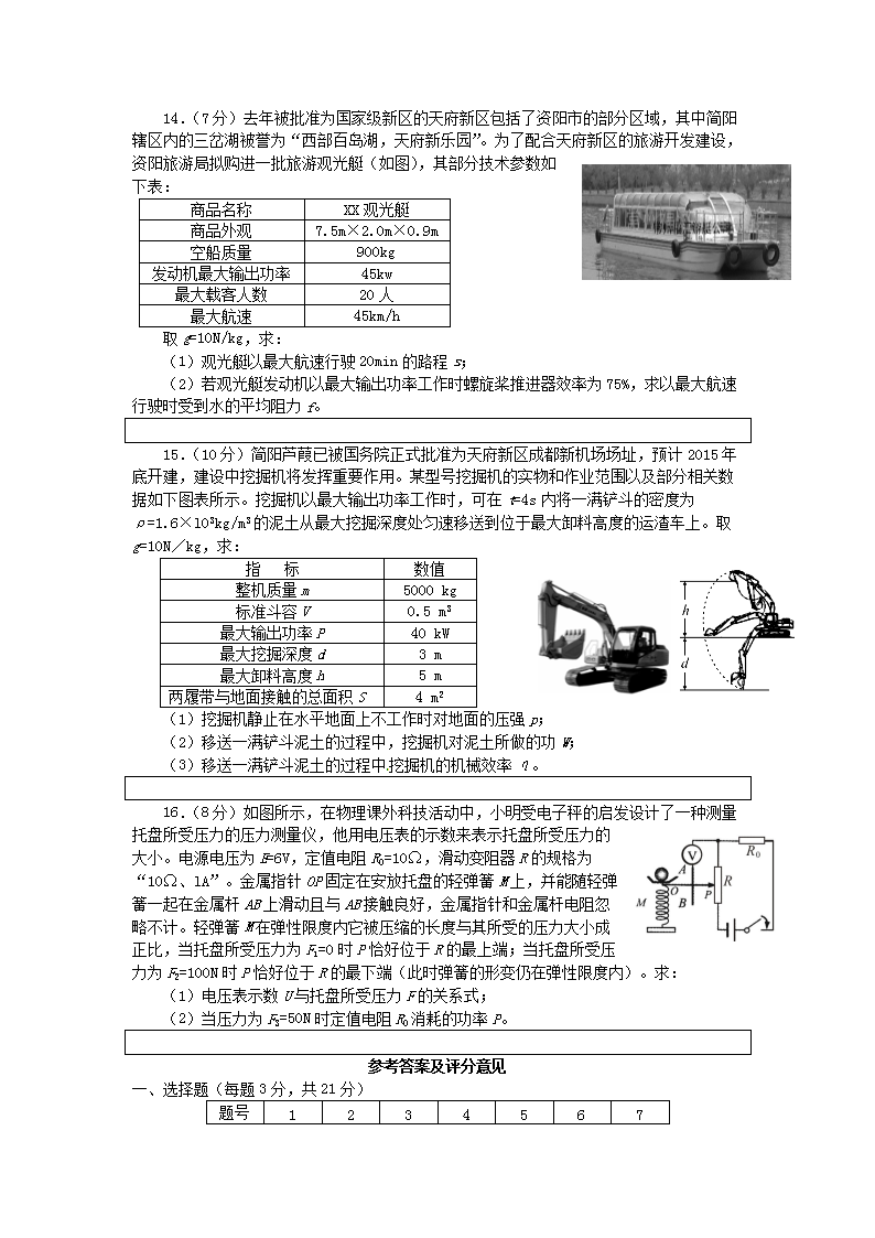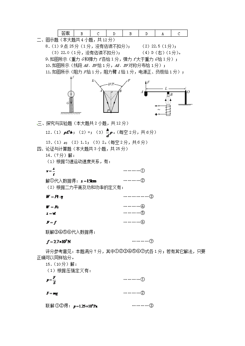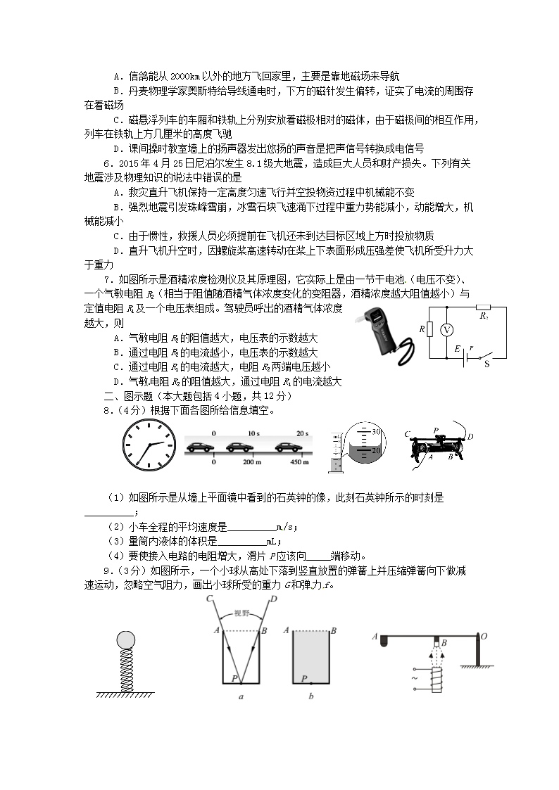 【文档名称】 2015四川省资阳市中考物理真题及答案(Word版).doc