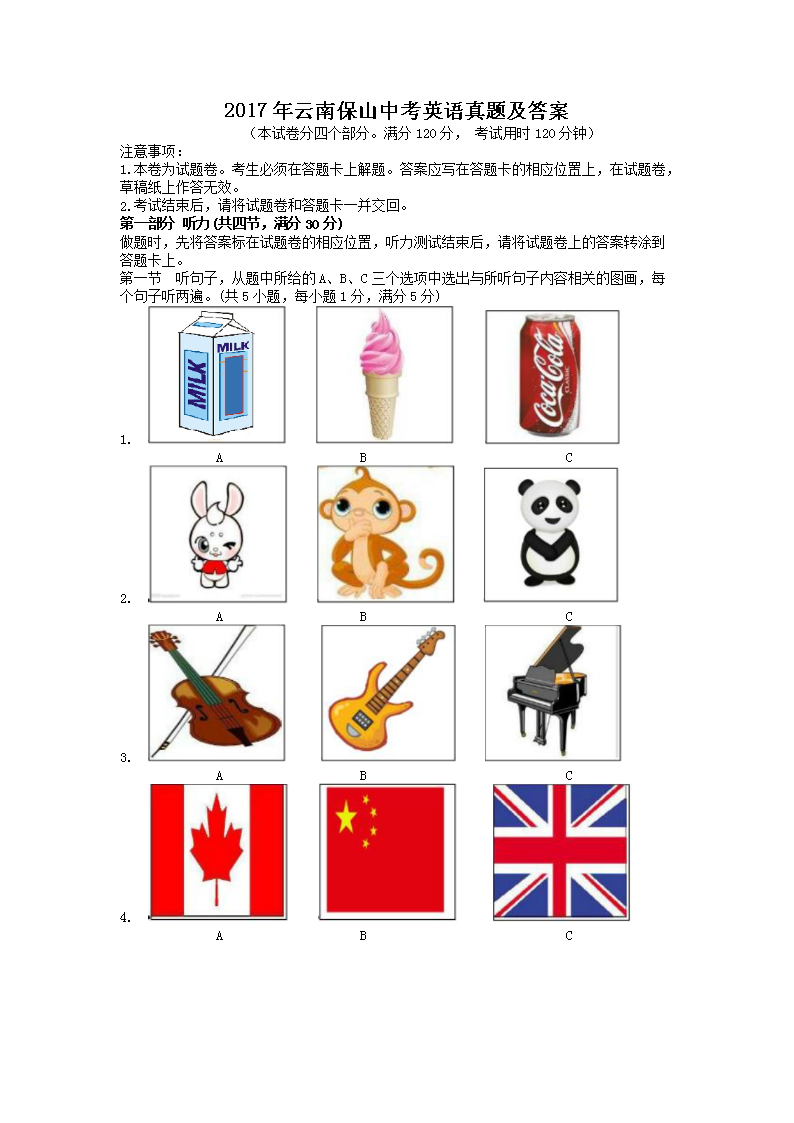 【文档名称】 2017年云南保山中考英语真题及答案(Word版).doc