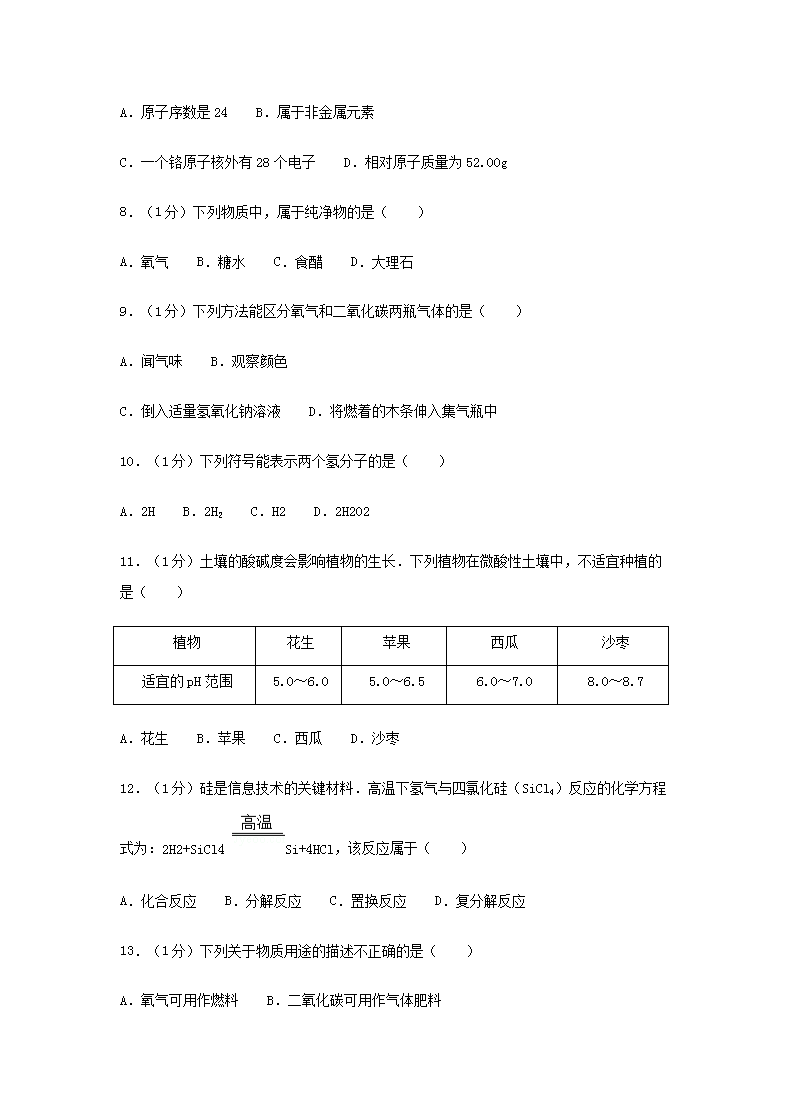 【文档名称】 2017年北京大兴中考化学真题及答案(Word版).doc