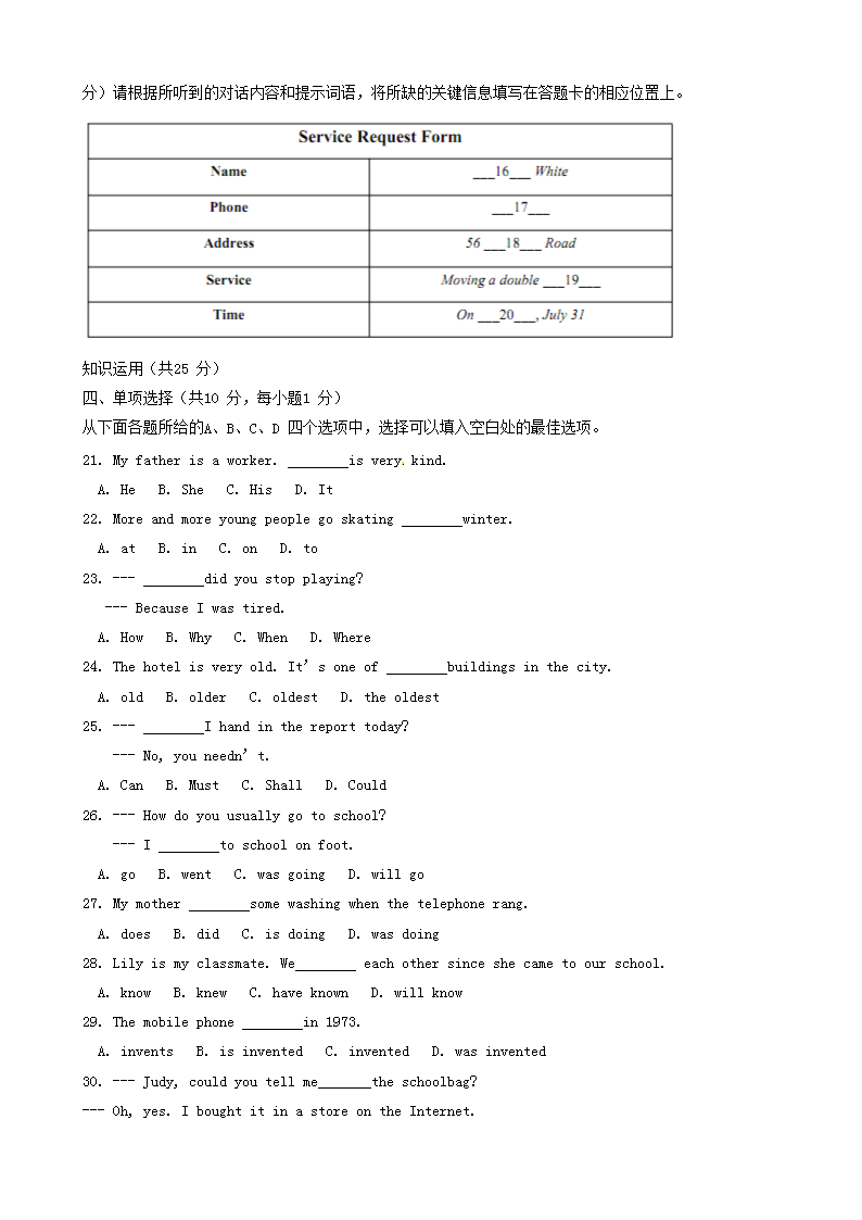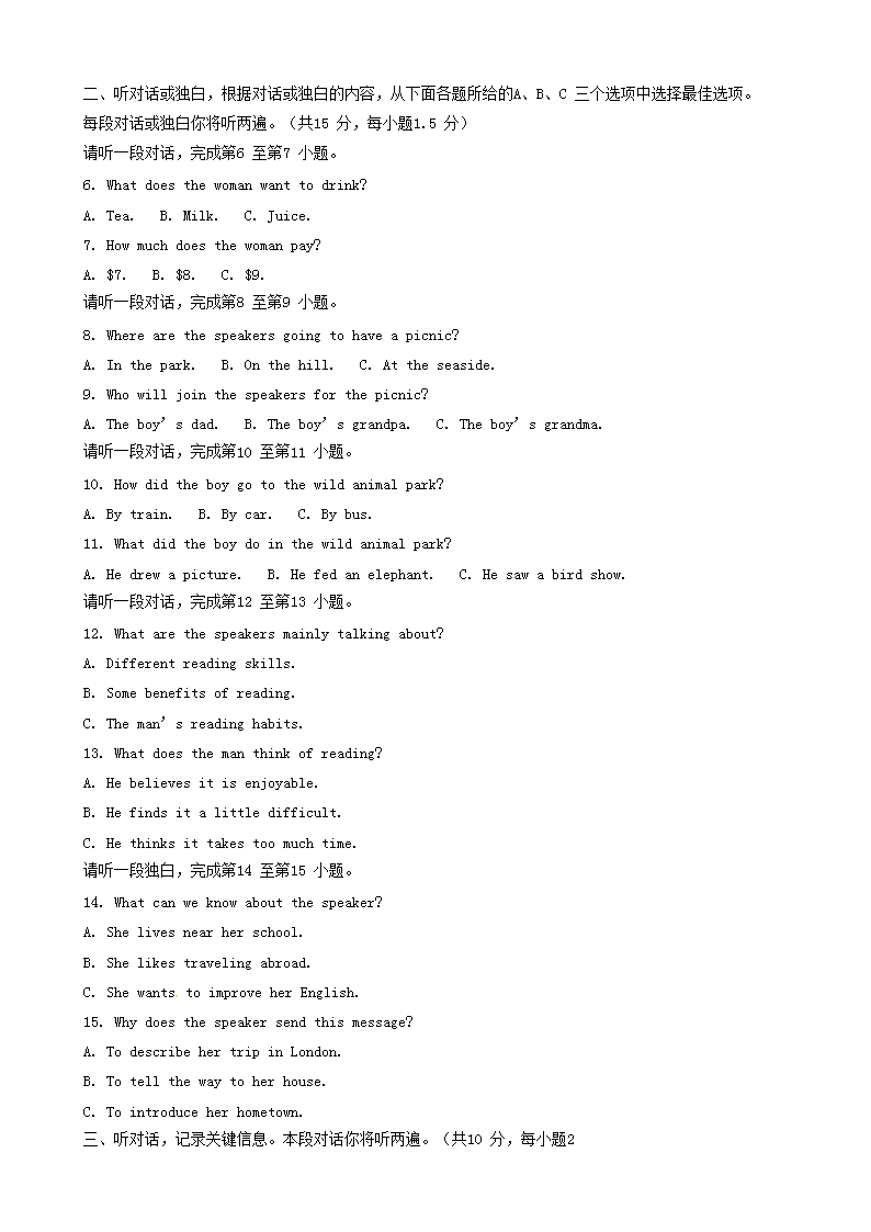 【文档预览】 无忧考网整理发布2017年北京大兴中考英语真题及答案(Word版),前五页预览如下: