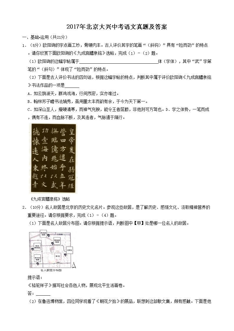 【文档名称】 2017年北京大兴中考语文真题及答案(Word版).doc