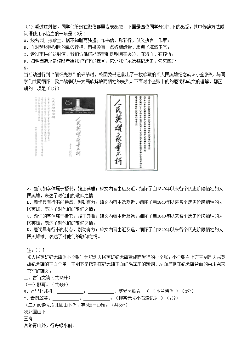 【文档预览】 无忧考网整理发布2018年北京大兴中考语文真题及答案(Word版),前五页预览如下: