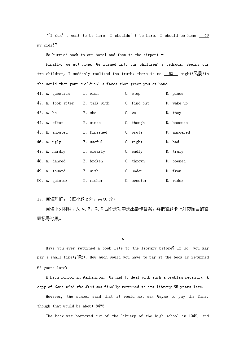 【文档名称】 2015年重庆沙坪坝中考英语真题及答案A卷(Word版).doc