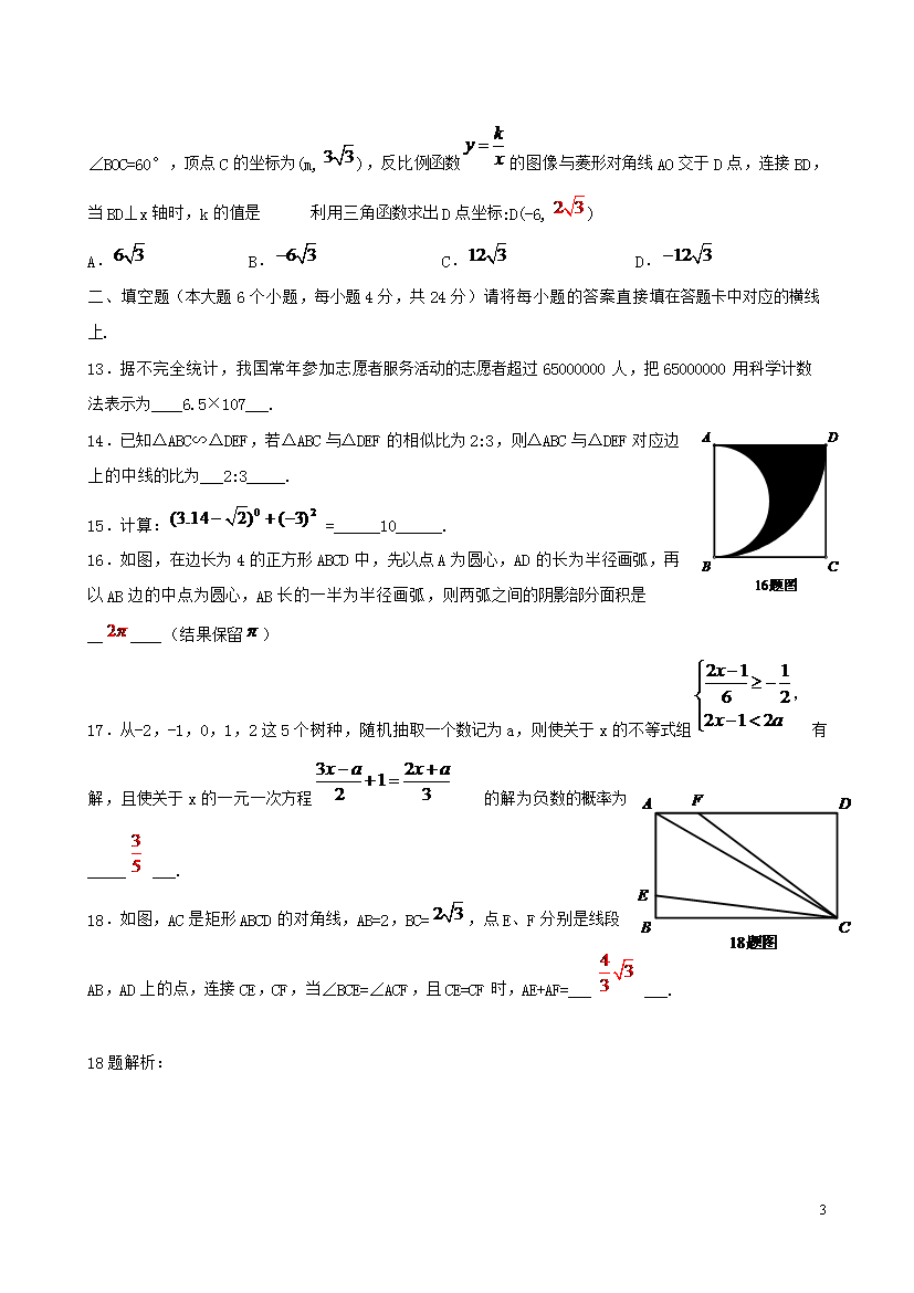 【文档名称】 2015年重庆渝北中考数学真题及答案B卷(Word版).doc