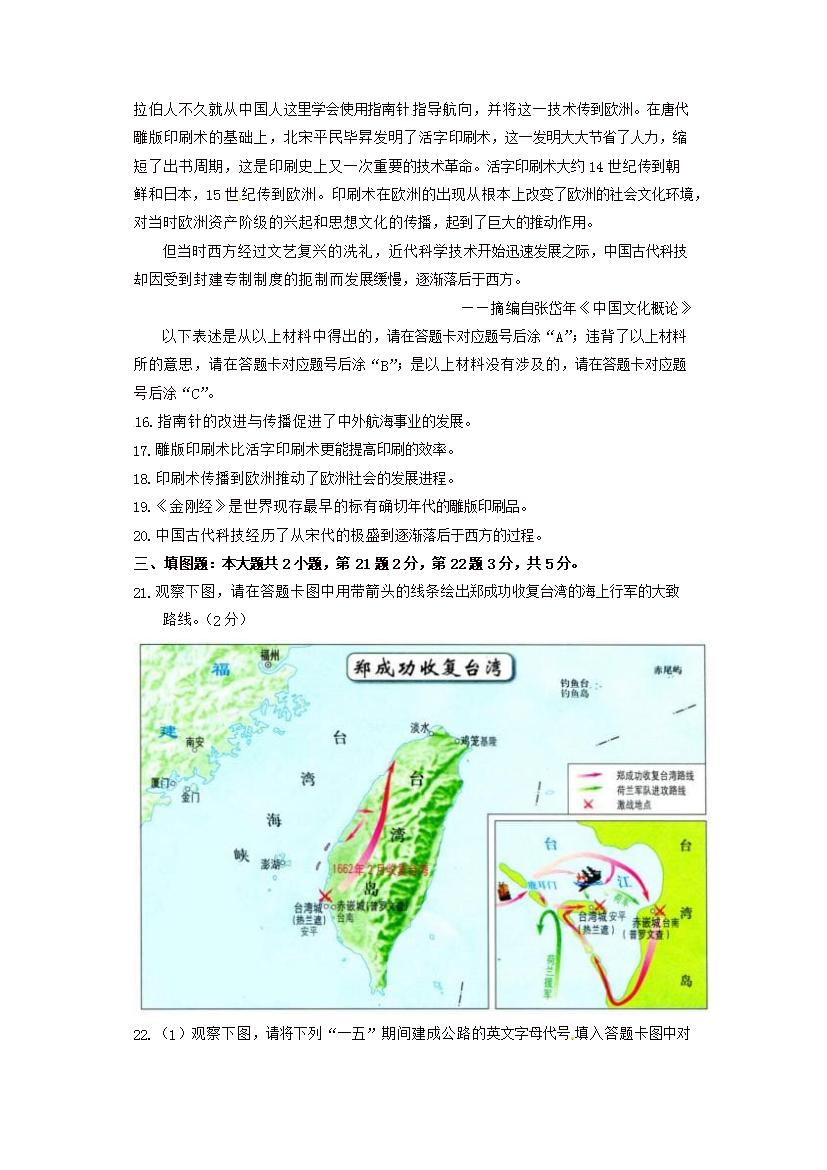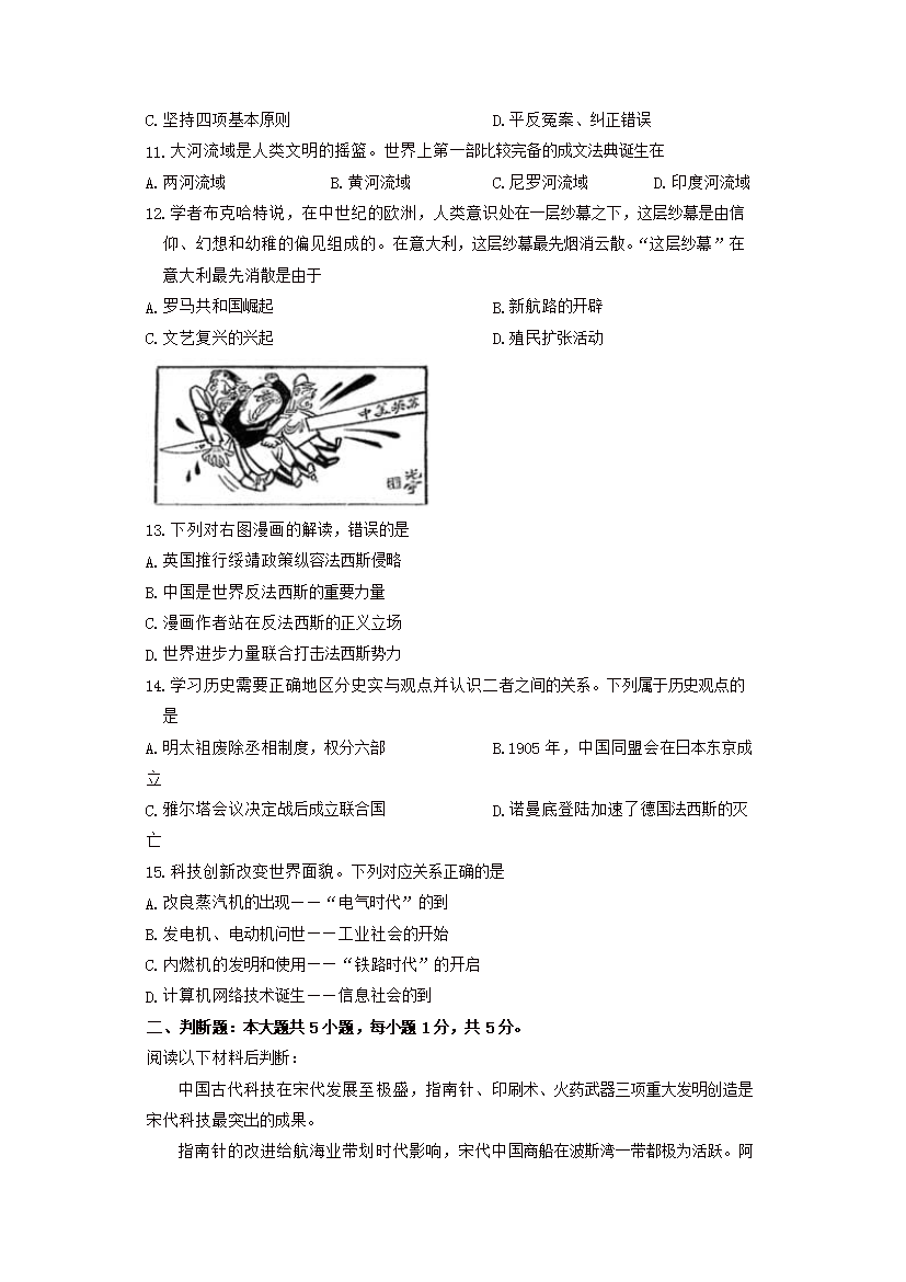 【文档名称】 2016年重庆长寿中考历史真题及答案B卷(Word版).doc