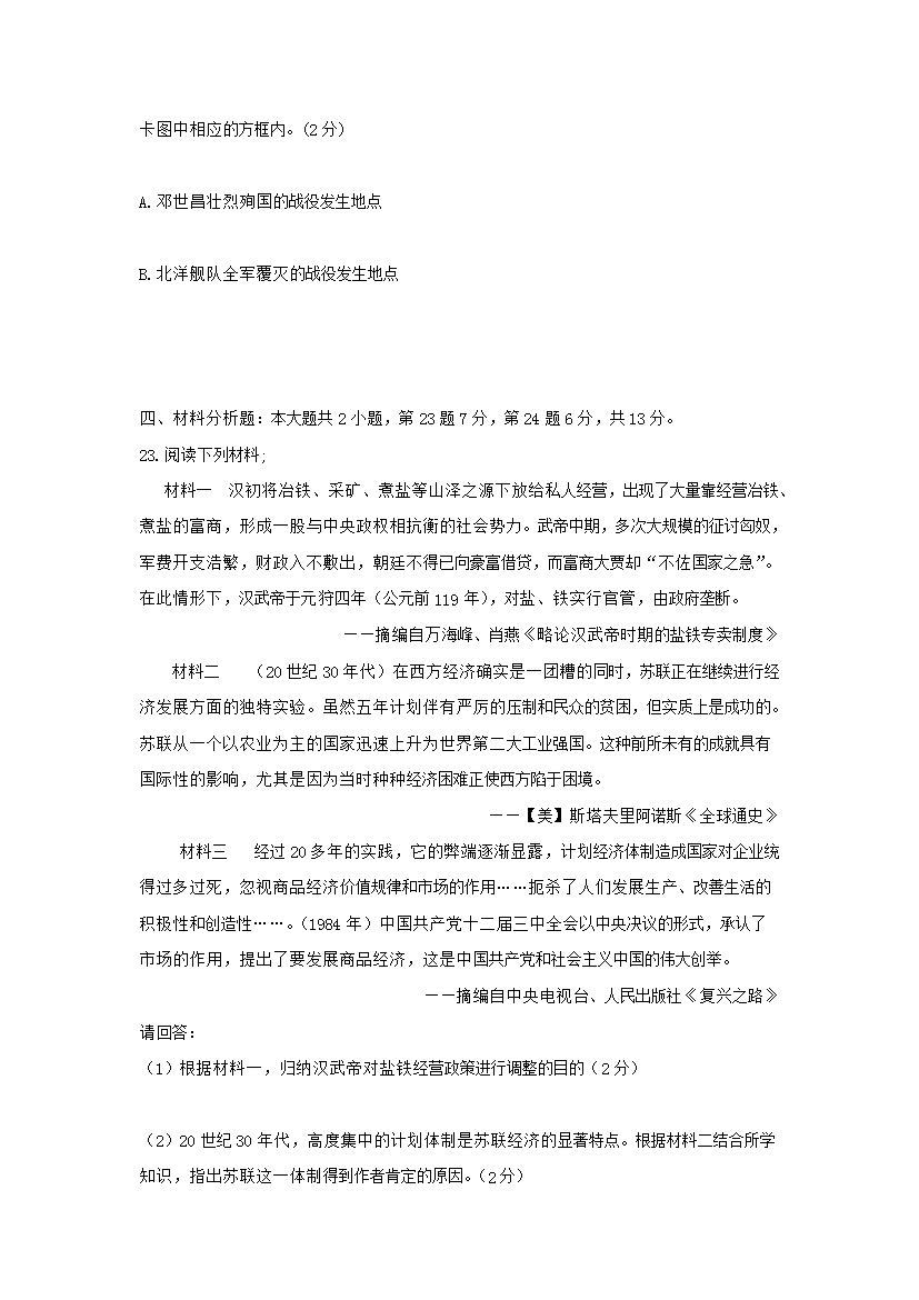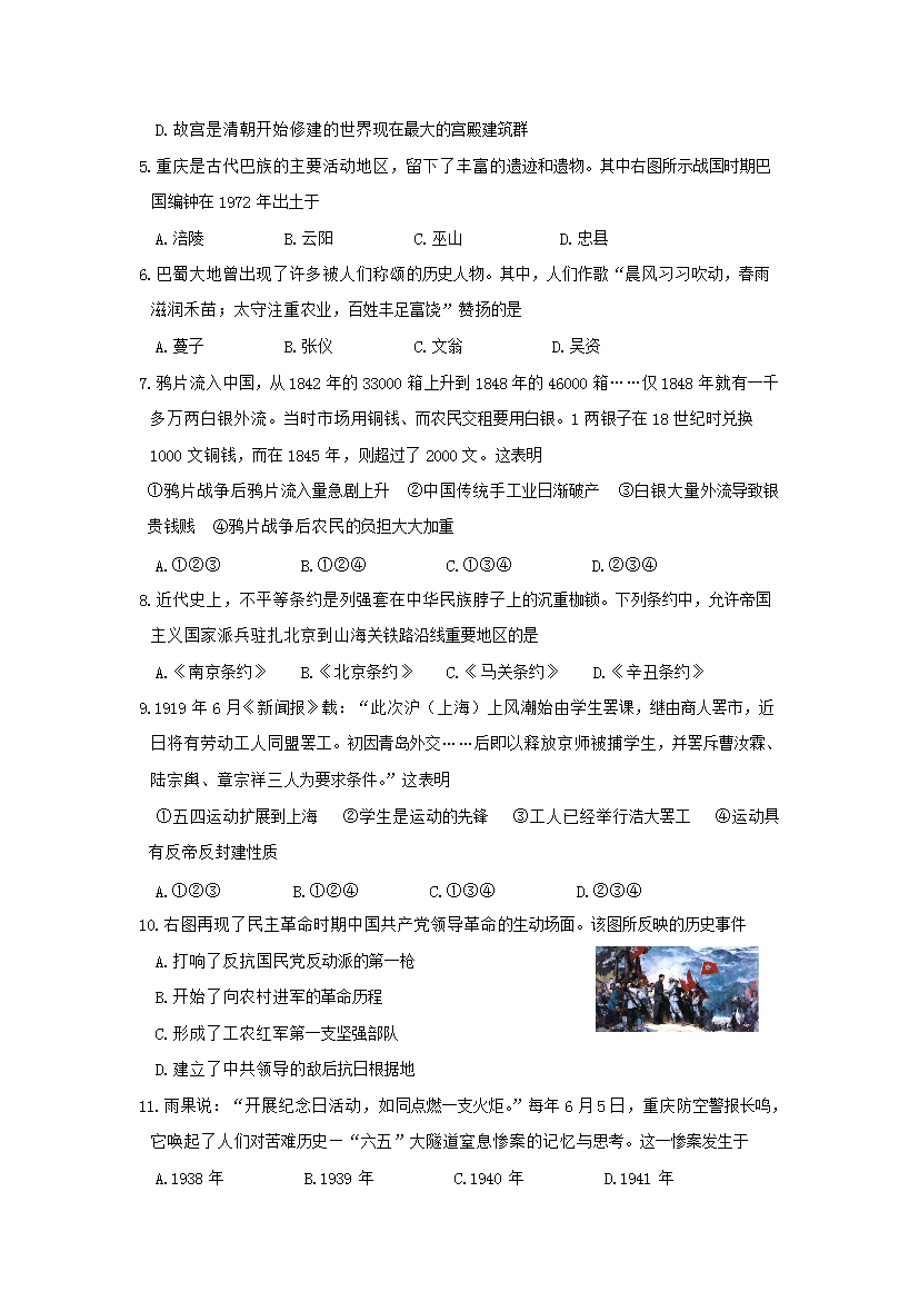 【文档名称】 2015年重庆渝中中考历史真题及答案A卷(Word版).doc