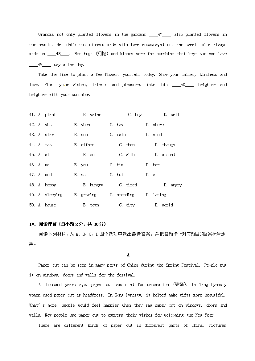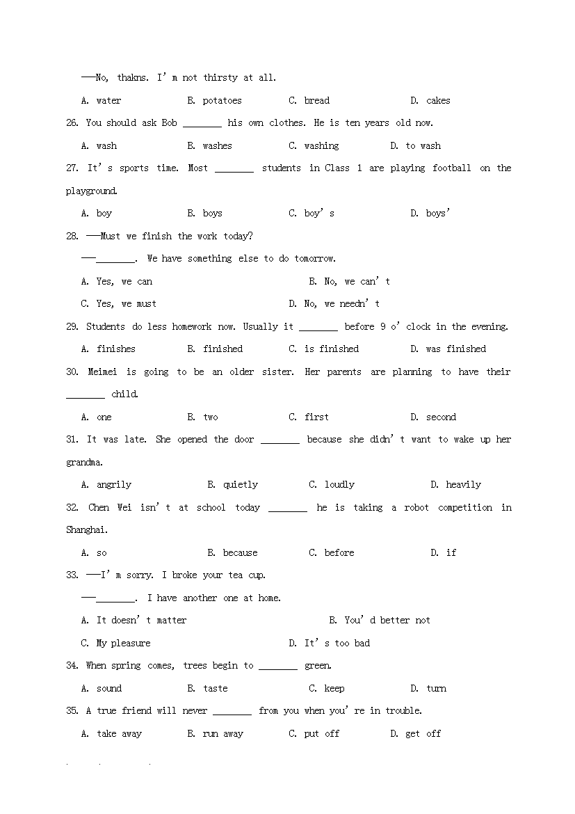 【文档名称】 2016年重庆长寿中考英语真题及答案A卷(Word版).doc