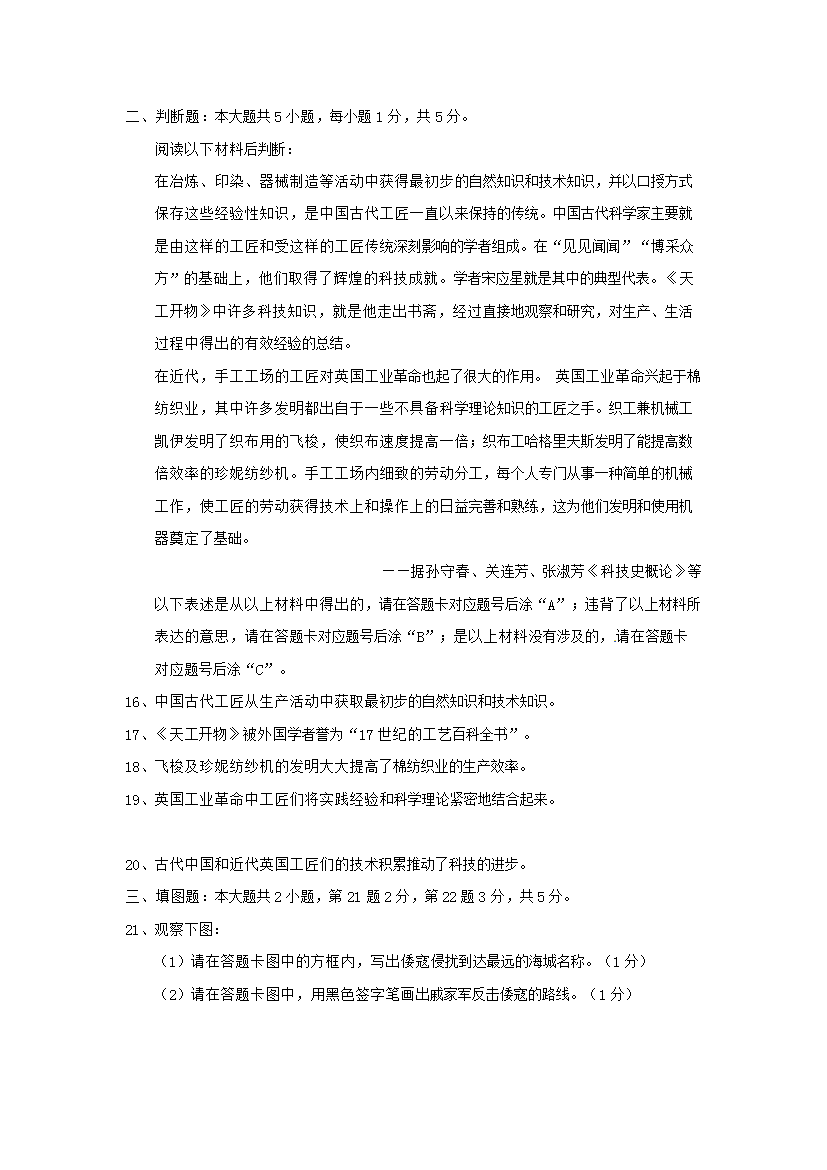 【文档预览】 无忧考网整理发布2018年重庆渝北中考历史真题及答案A卷(Word版),前五页预览如下:
