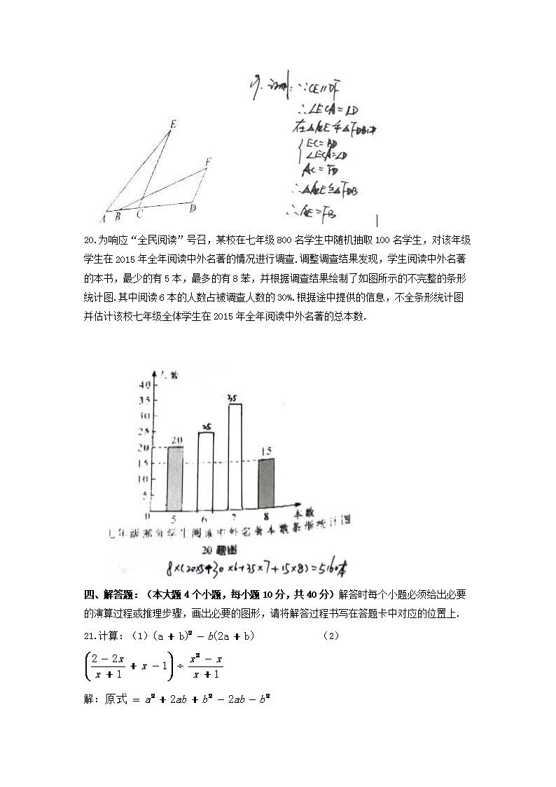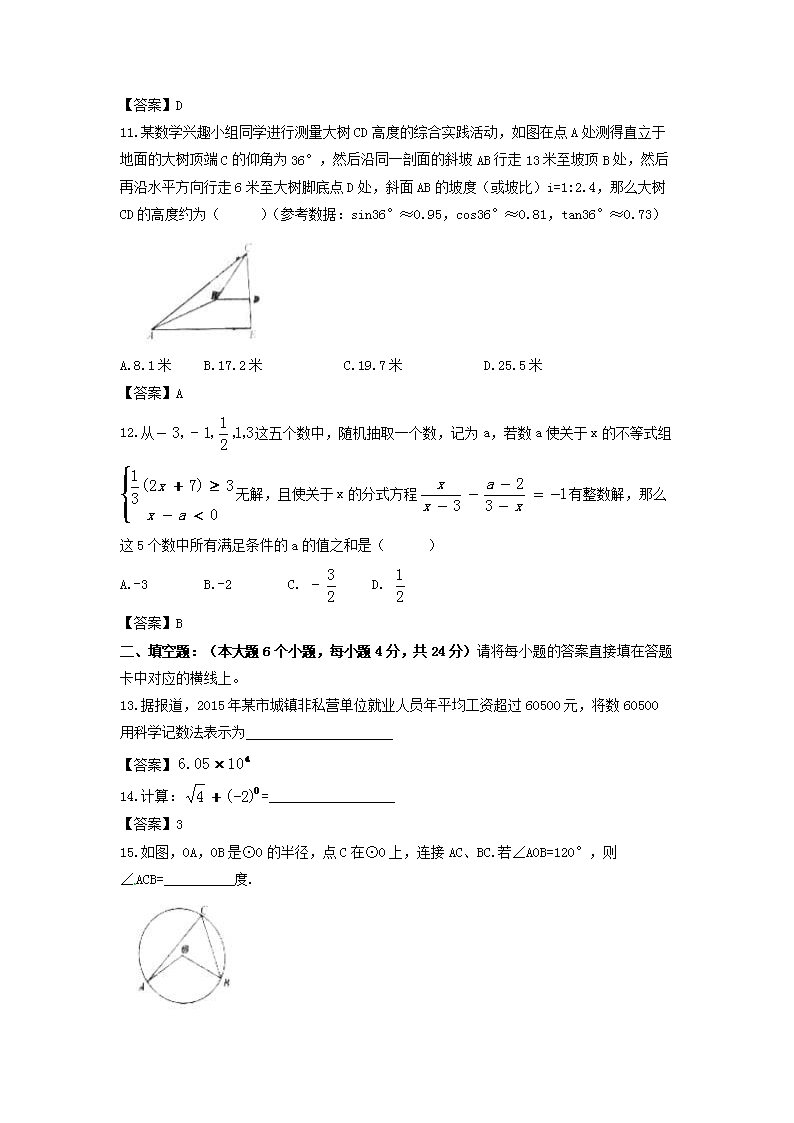 【文档名称】 2016年重庆沙坪坝中考数学真题及答案A卷(Word版).doc