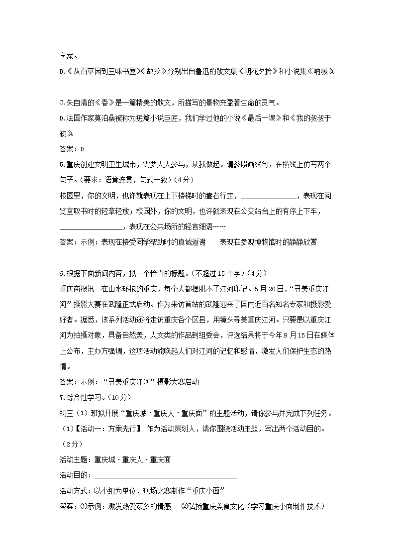 【文档名称】 2016年重庆沙坪坝中考语文真题及答案A卷(Word版).doc