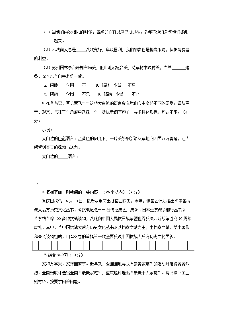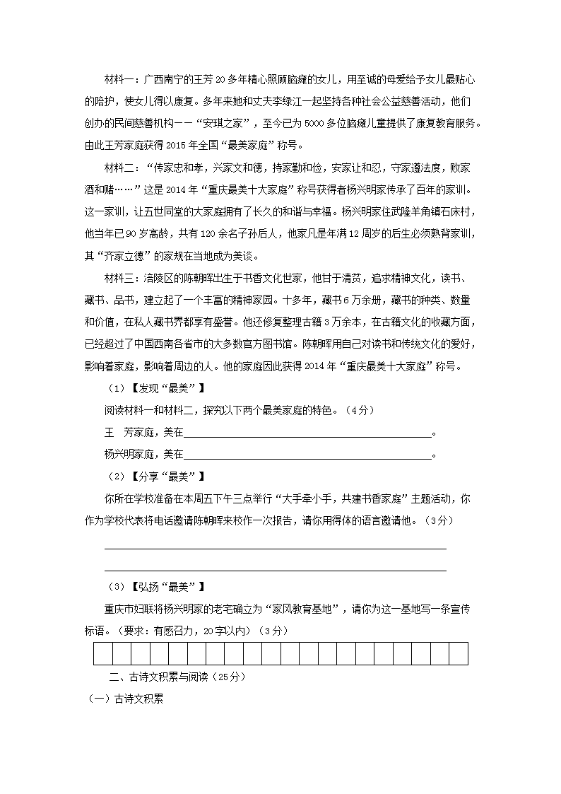 【文档名称】 2015年重庆北碚中考语文真题及答案B卷(Word版).doc