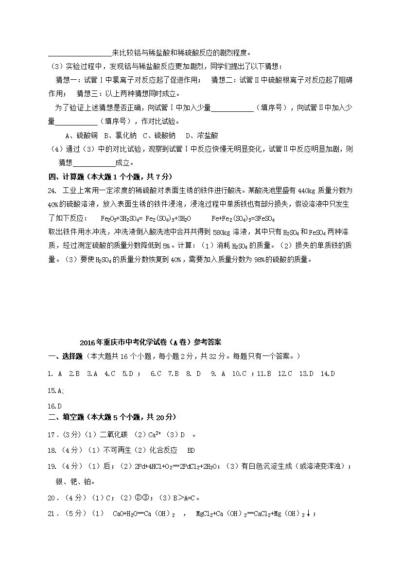 【文档预览】 无忧考网整理发布2016年重庆渝中中考化学试题及答案A卷(Word版),前五页预览如下: