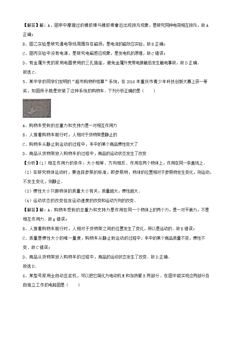 【文档名称】 2016年重庆渝中中考物理真题及答案B卷(Word版).doc