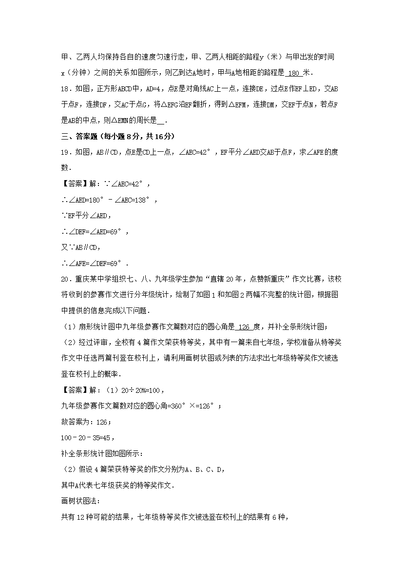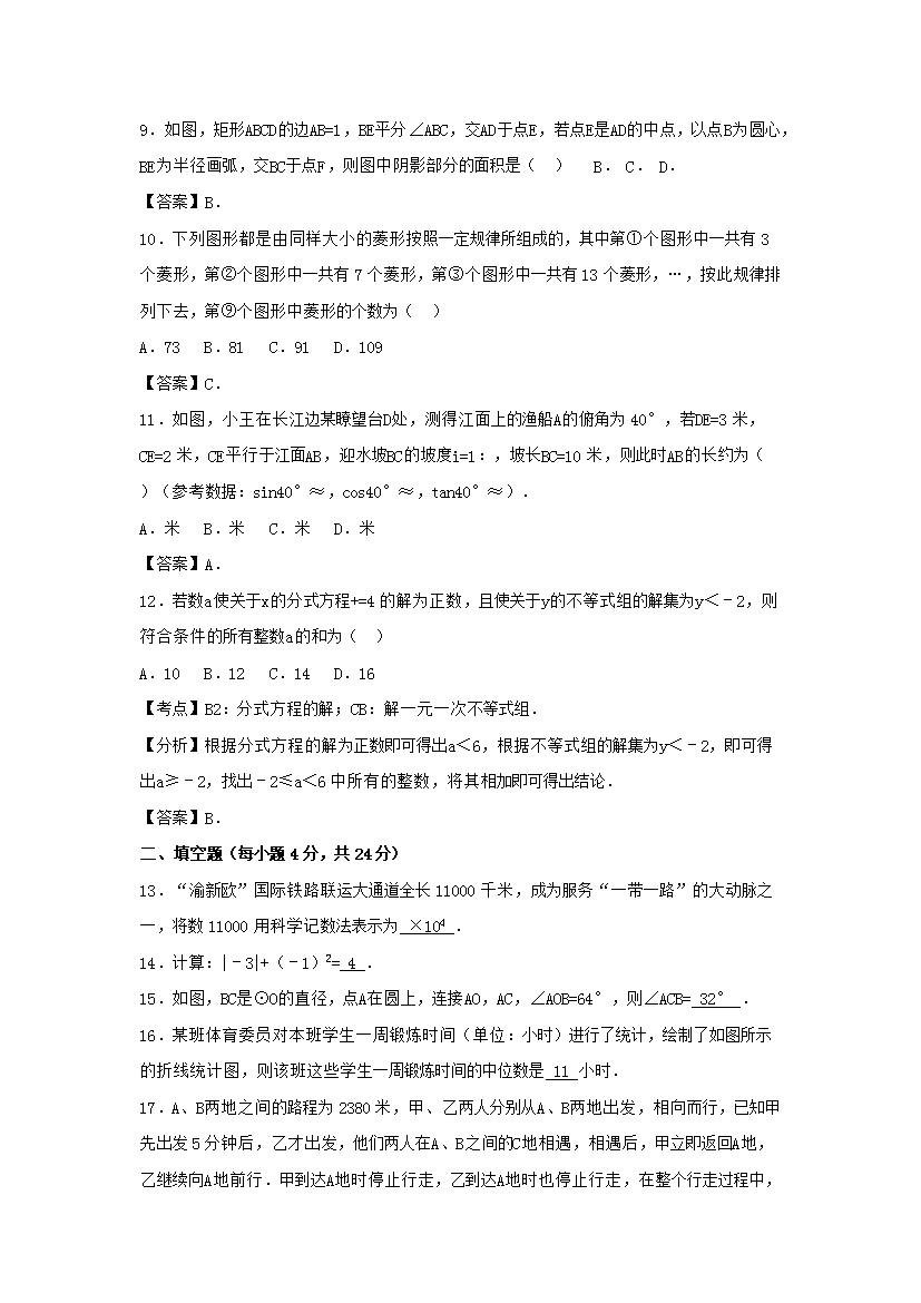 【文档名称】 2017年重庆长寿中考数学真题及答案A卷(Word版).doc