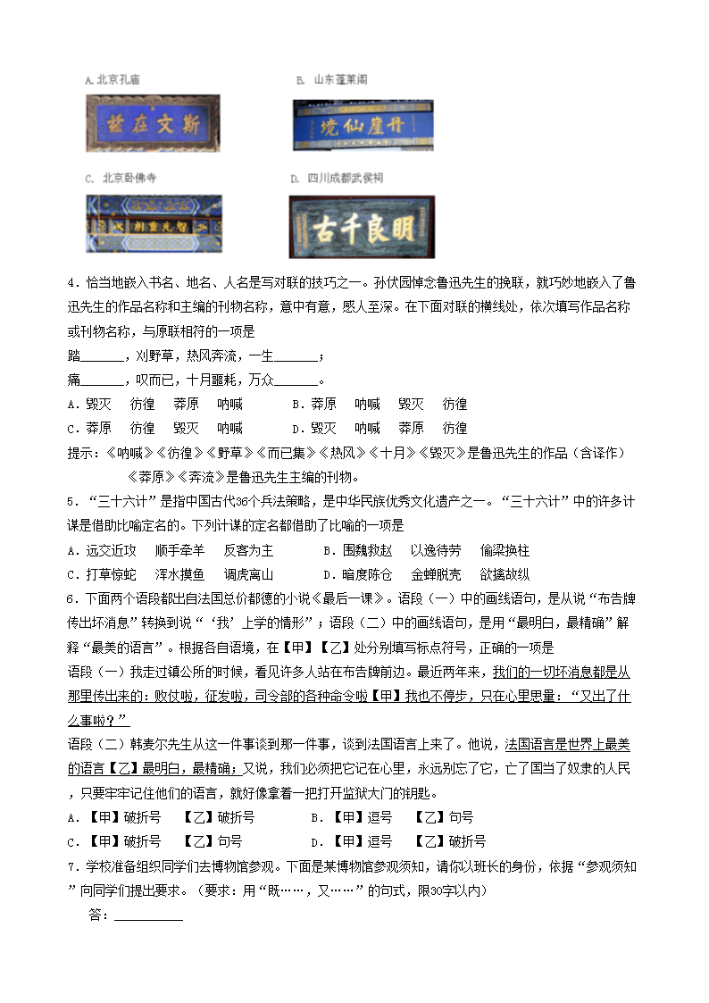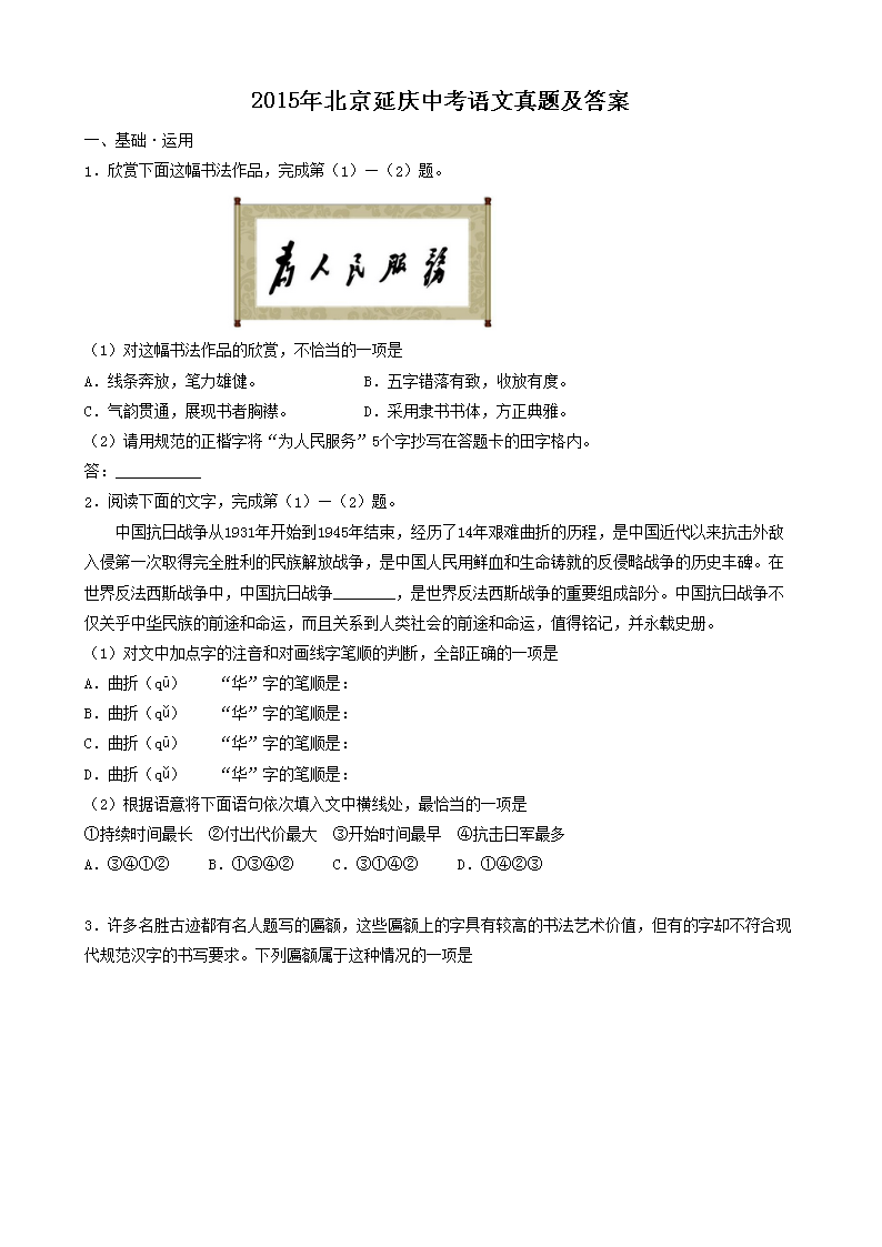 【文档名称】 2015年北京延庆中考语文真题及答案(Word版).doc