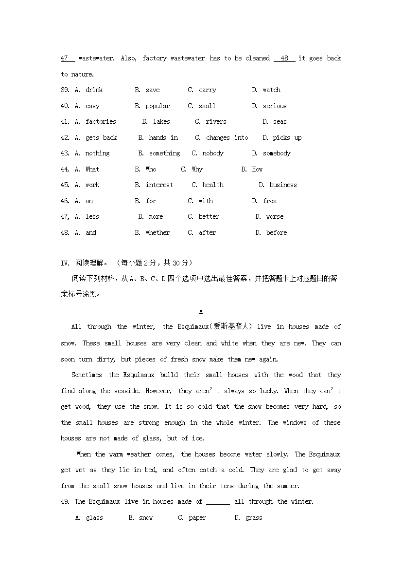 【文档名称】 2017年重庆长寿中考英语真题及答案B卷(Word版).doc