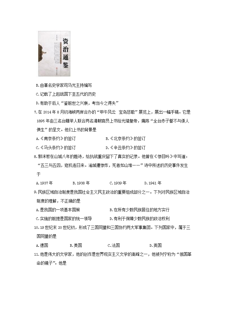 【文档名称】 2015年重庆双桥中考历史真题及答案B卷(Word版).doc