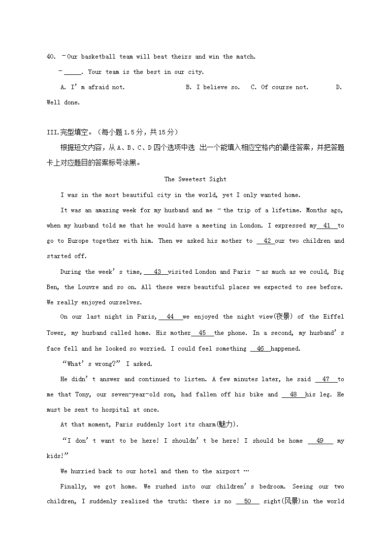 【文档名称】 2015年重庆双桥中考英语真题及答案A卷(Word版).doc