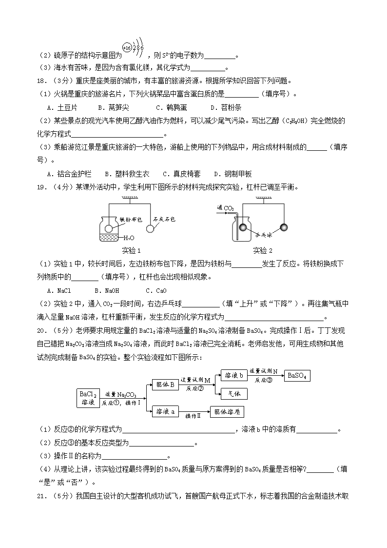 【文档名称】 2018年重庆永川中考化学真题及答案B卷(Word版).doc