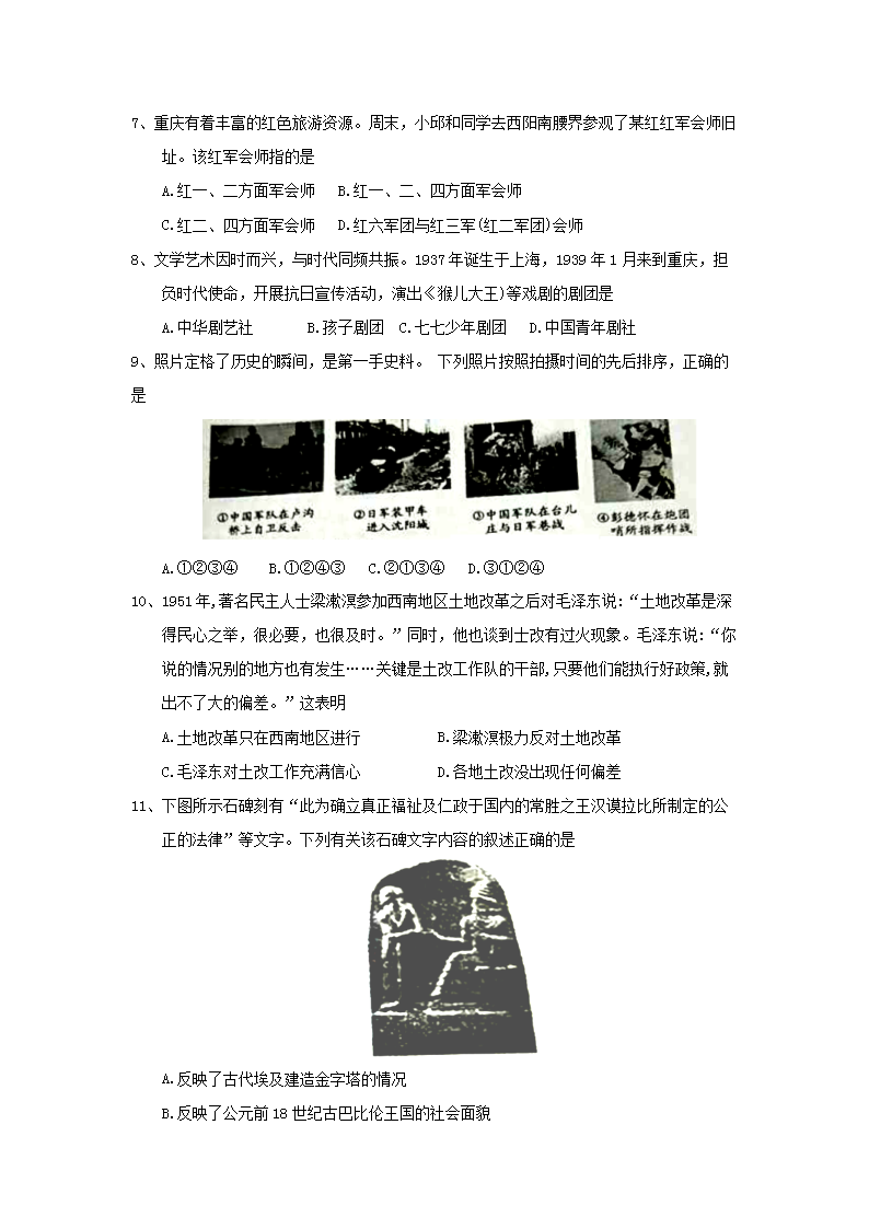 【文档名称】 2018年重庆永川中考历史真题及答案B卷(Word版).doc