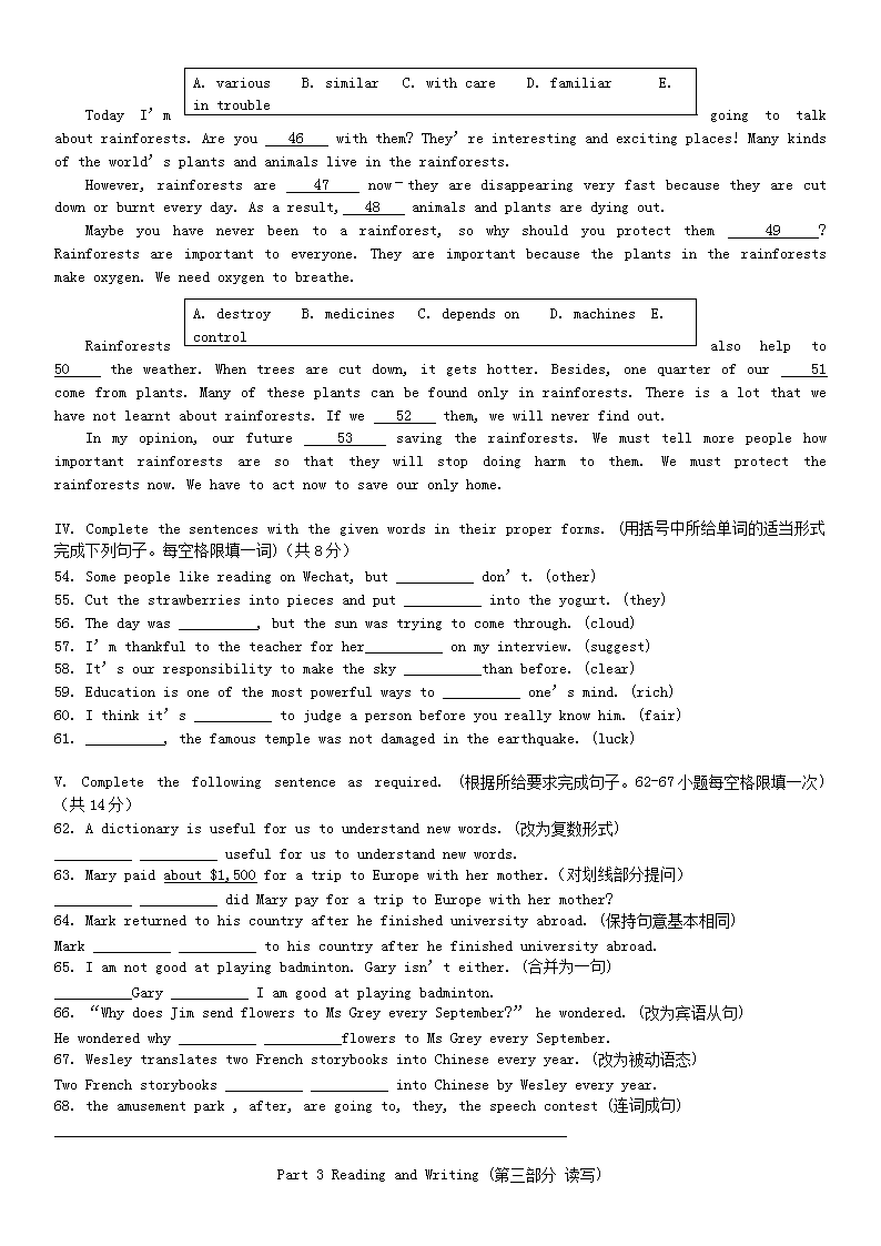 【文档预览】 无忧考网整理发布2015年上海静安中考英语真题及答案(Word版),前五页预览如下: