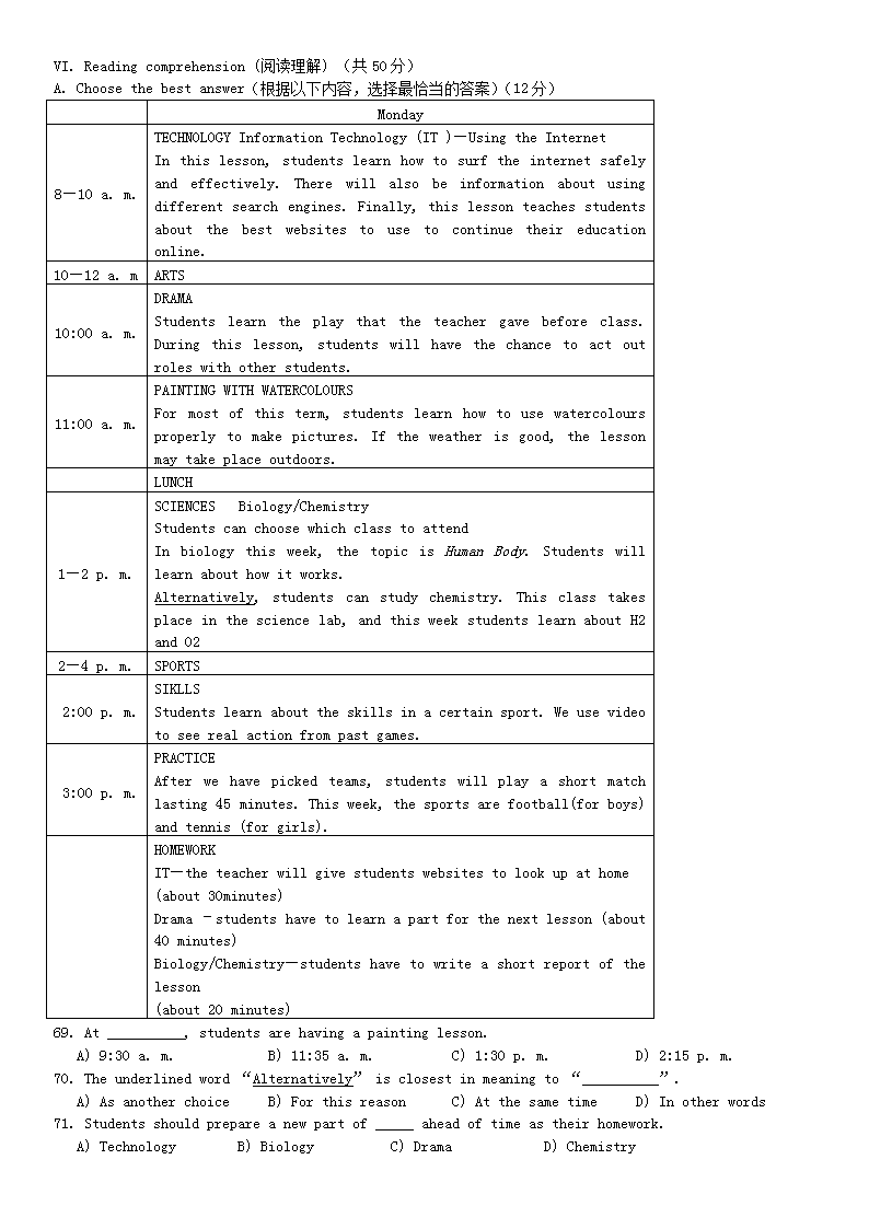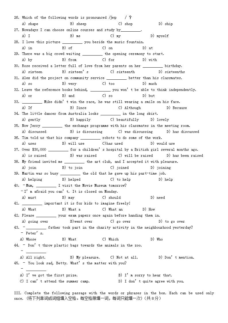 【文档名称】 2015年上海静安中考英语真题及答案(Word版).doc
