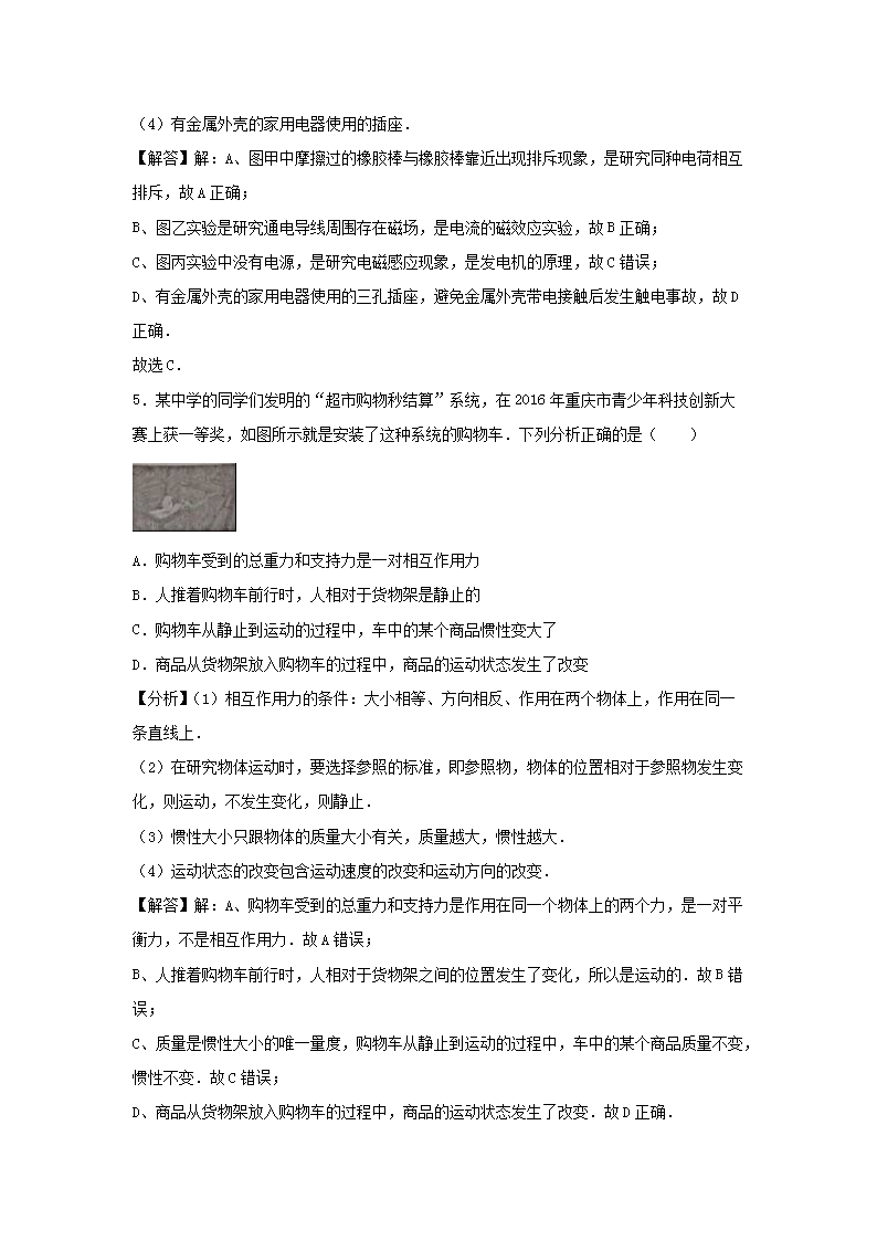 【文档名称】 2016年重庆北碚中考物理真题及答案B卷(Word版).doc