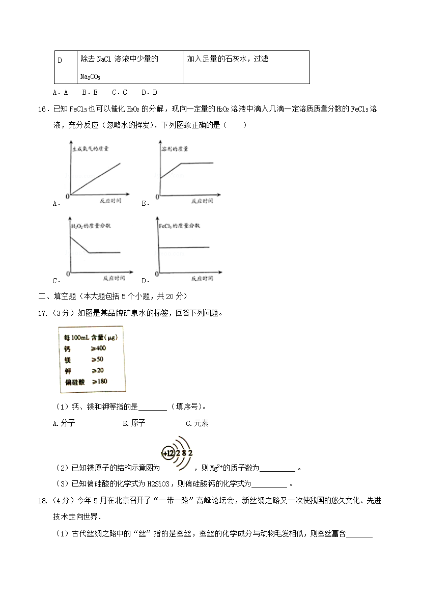 【文档名称】 2017年重庆渝中中考化学真题及答案B卷(Word版).doc