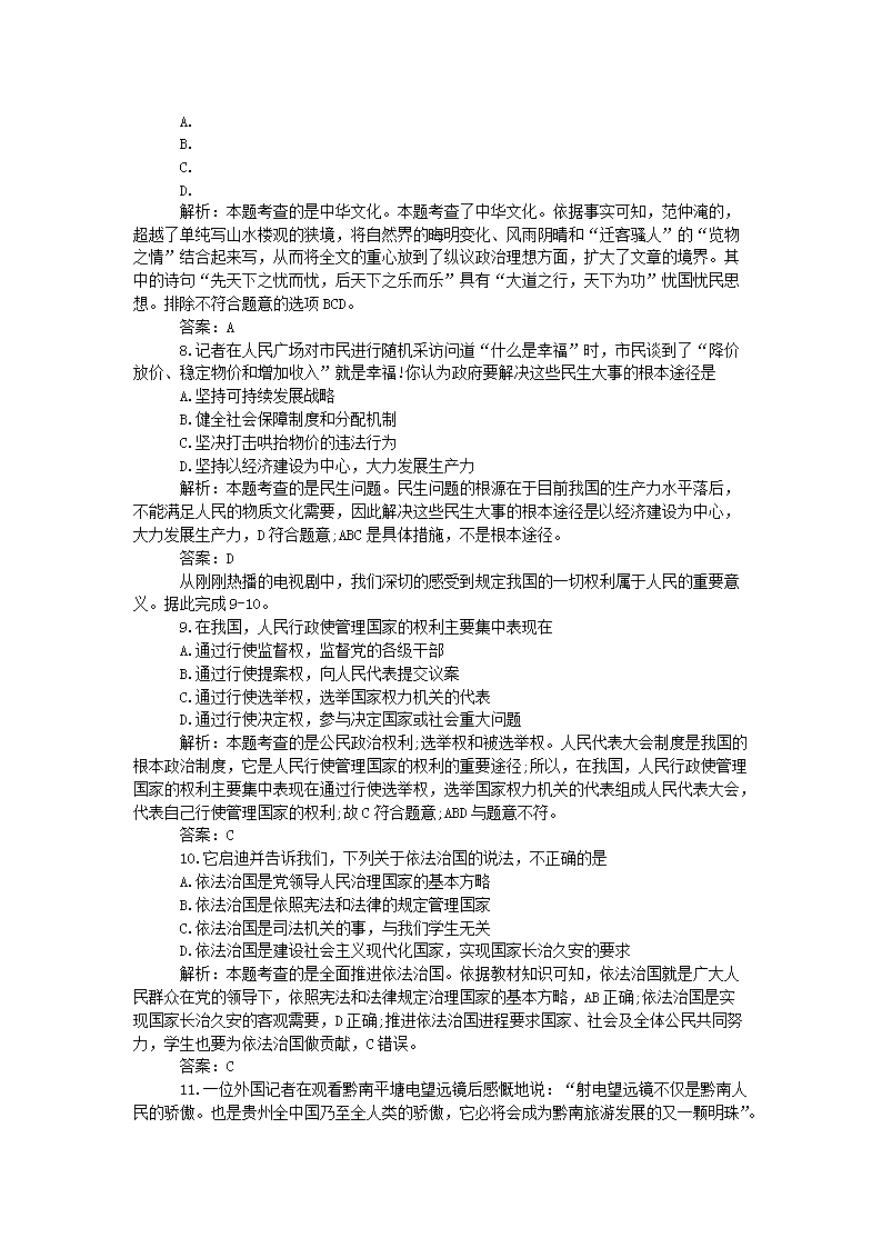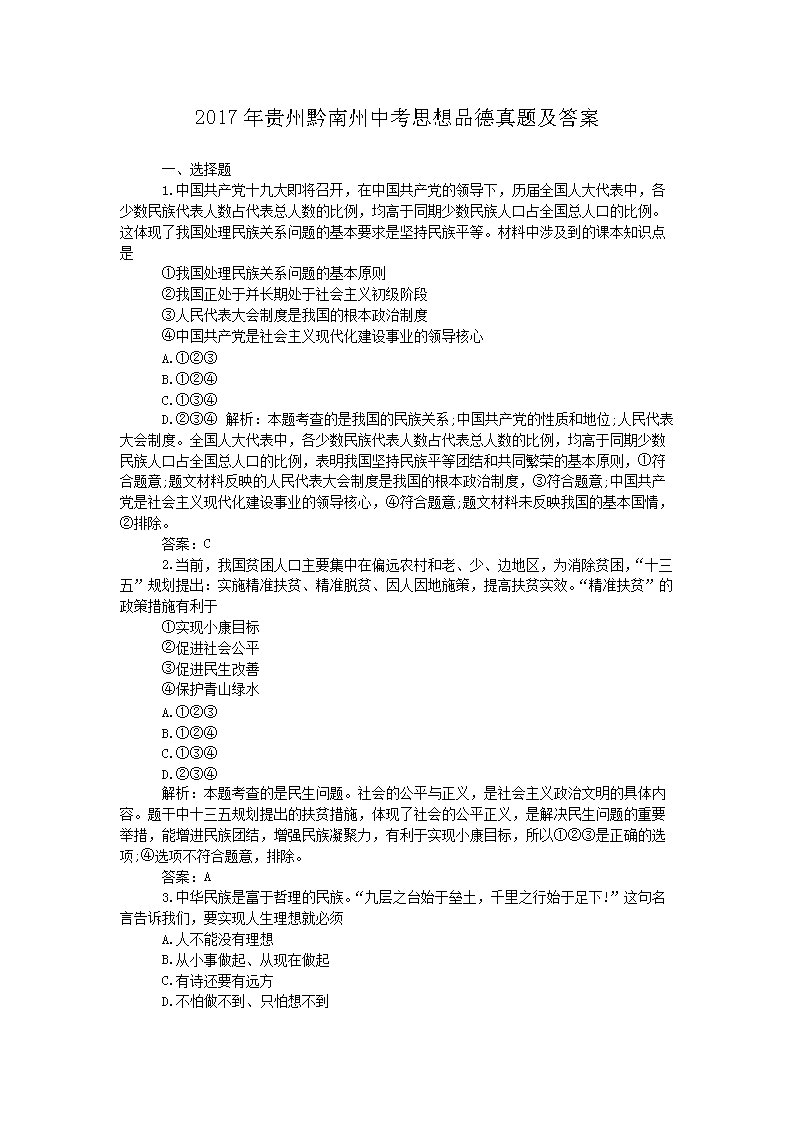 【文档预览】 无忧考网整理发布2017年贵州黔南州中考思想品德真题及答案(Word版),前五页预览如下: