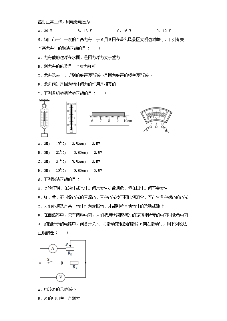 【文档名称】 2016年贵州铜仁市中考物理真题及答案(Word版).doc