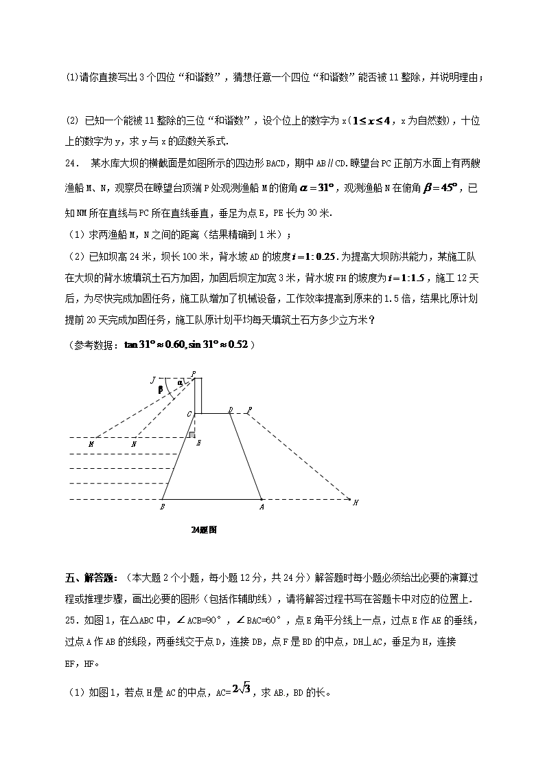 【文档名称】 2015年重庆九龙坡中考数学真题及答案A卷(Word版).doc