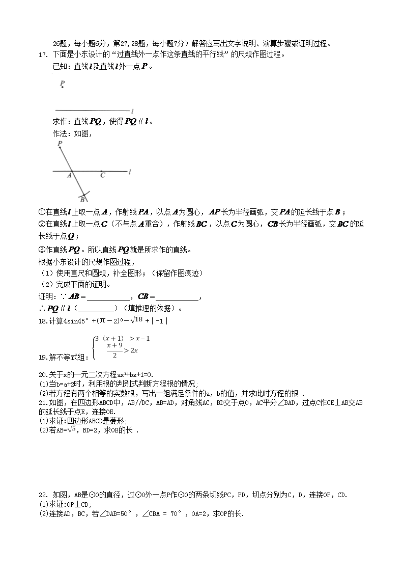 【文档名称】 2018年北京延庆中考数学真题及答案(Word版).doc