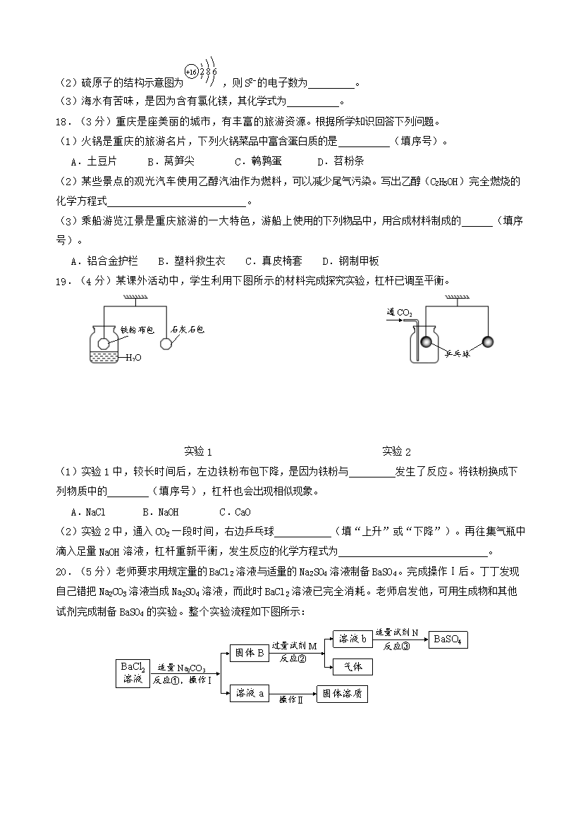 【文档名称】 2018年重庆渝中中考化学真题及答案B卷(Word版).doc