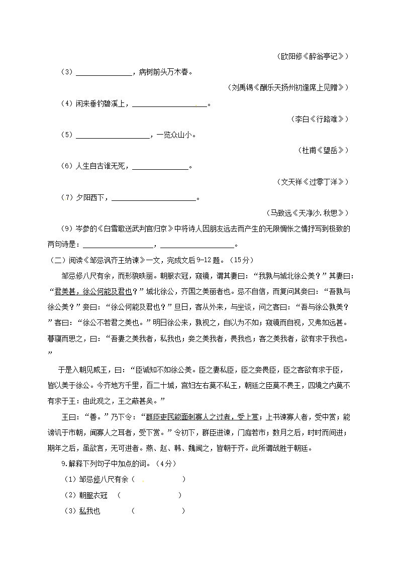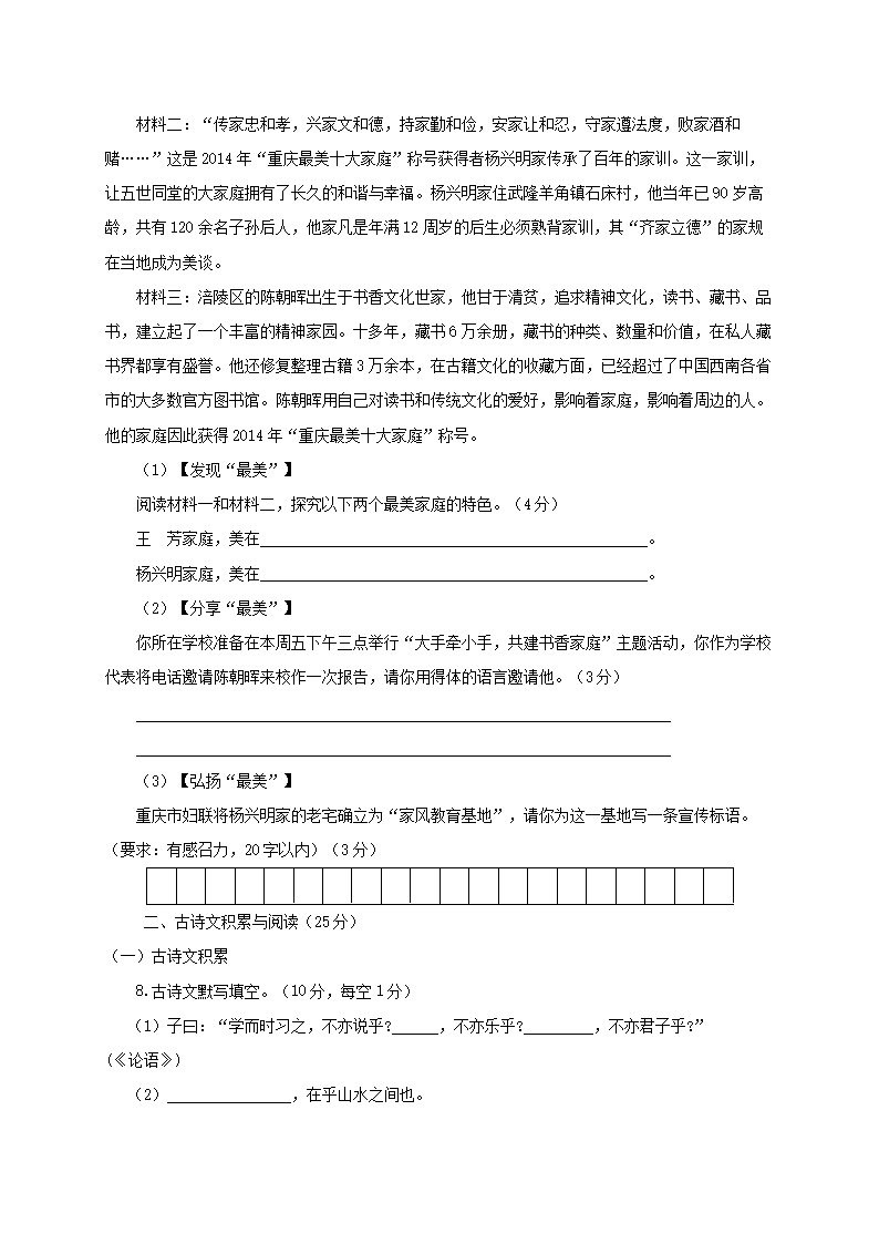 【文档名称】 2015年重庆九龙坡中考语文真题及答案B卷(Word版).doc